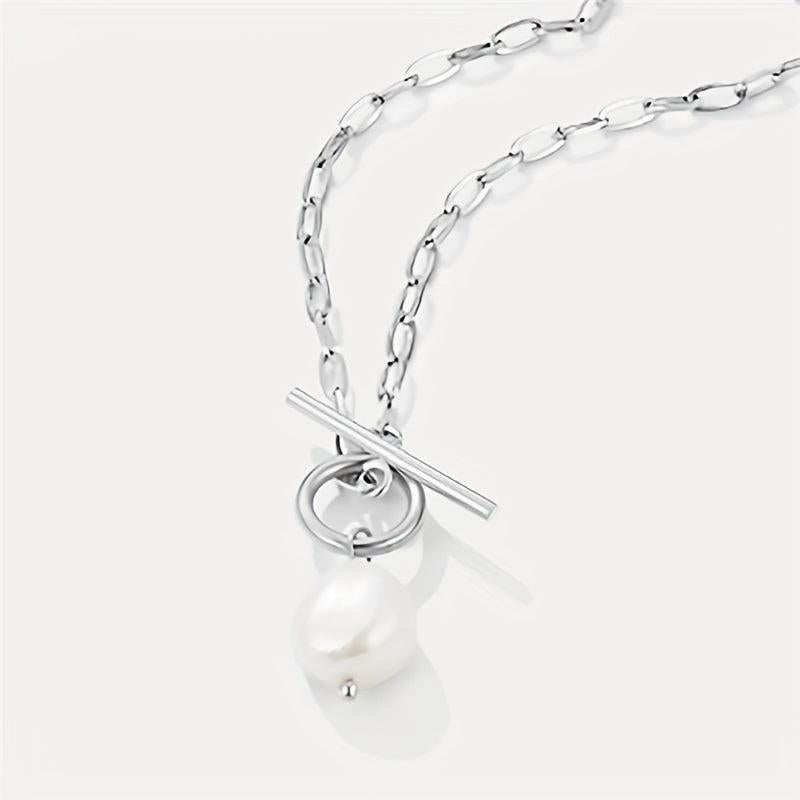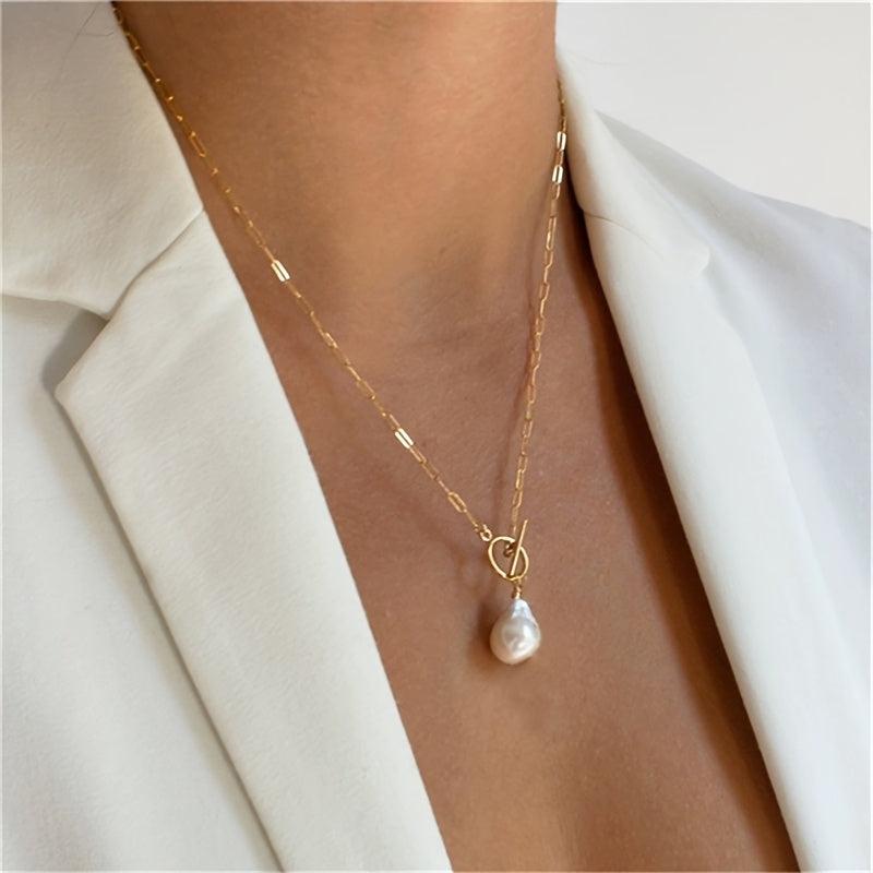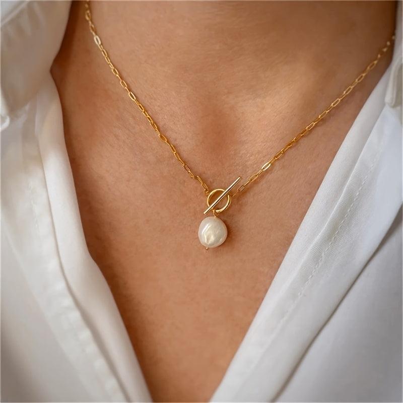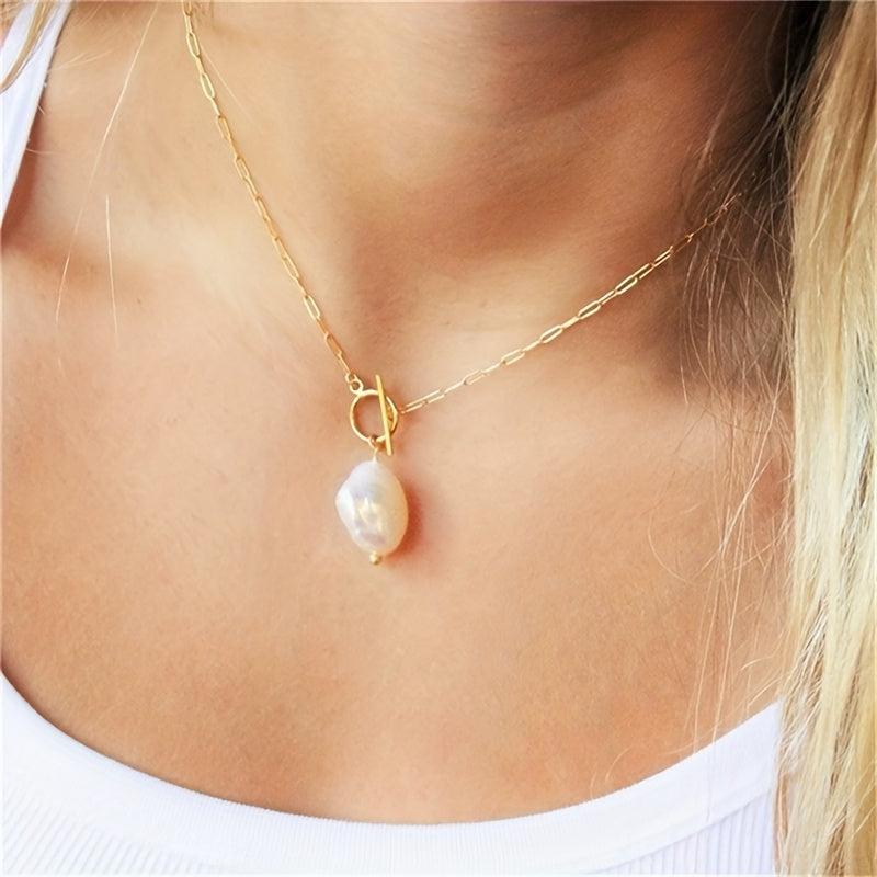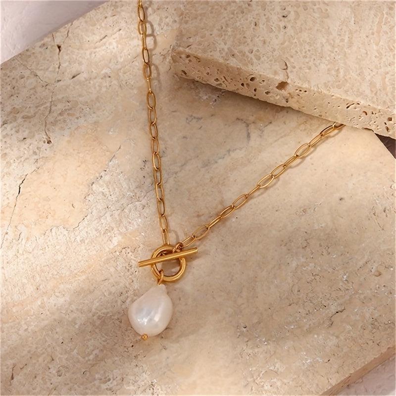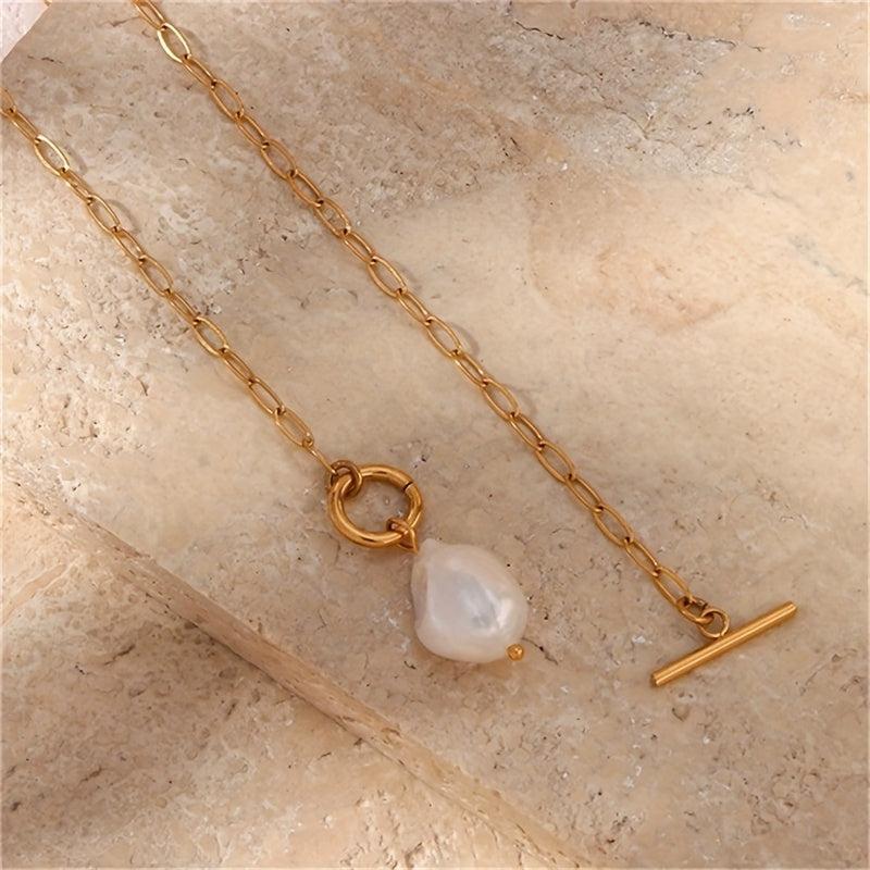 Boho Stainless Steel Freshwater Pearl Necklace Golden Tone Chain