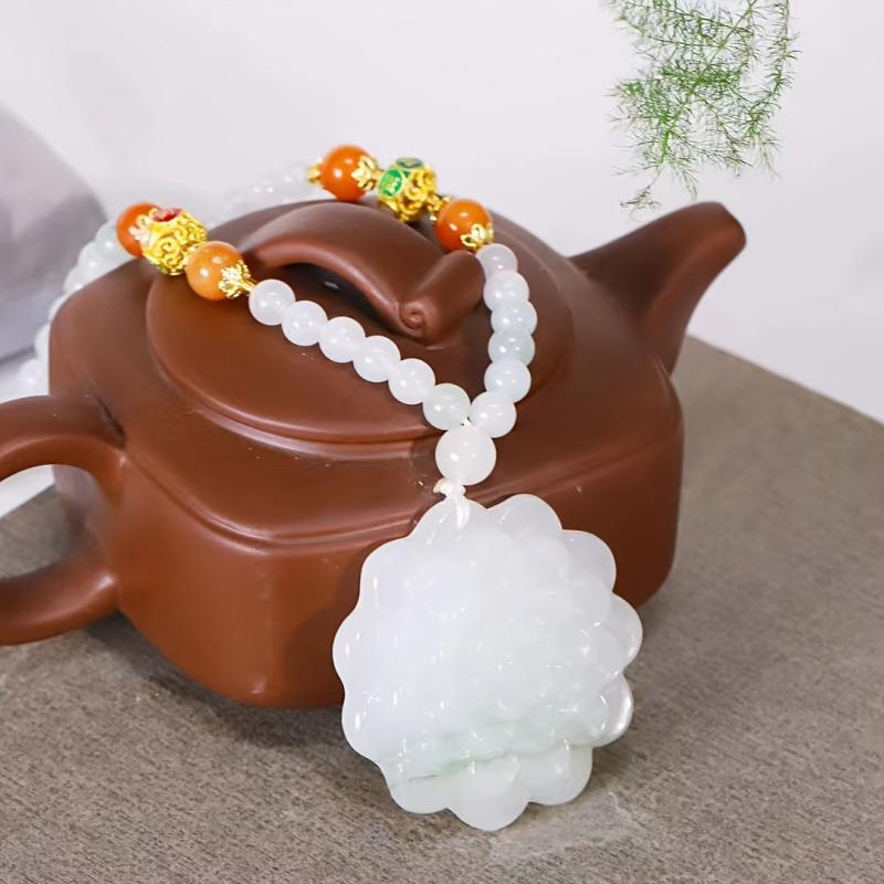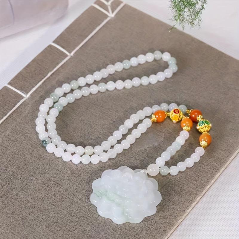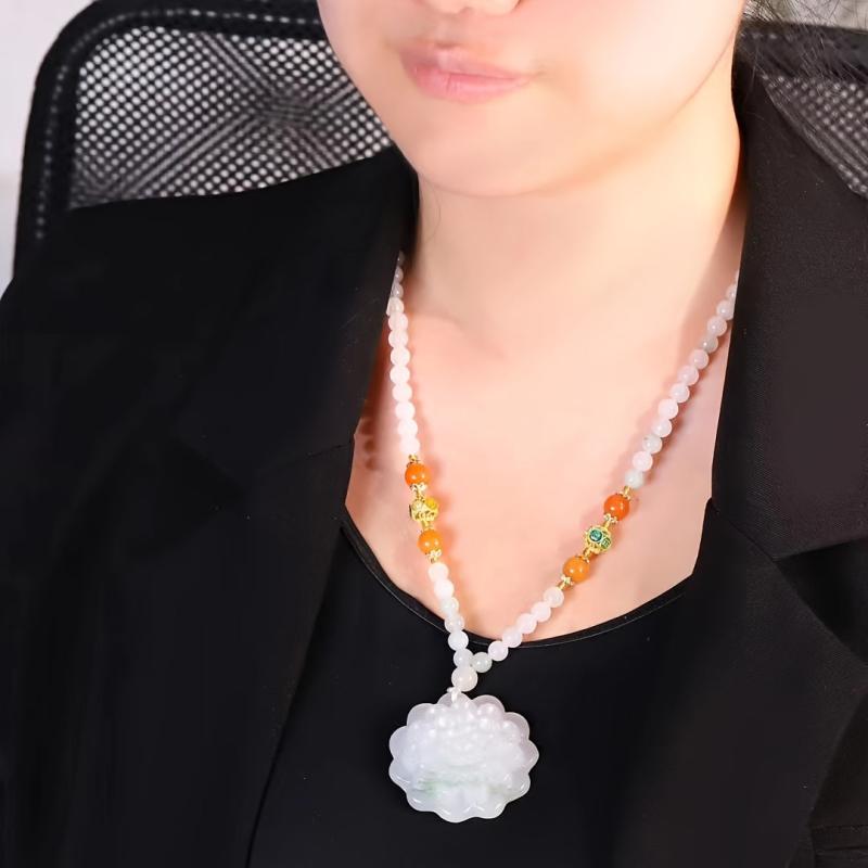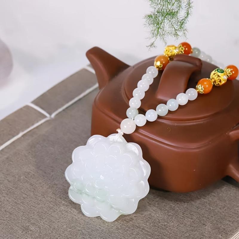 This boho style necklace features a peony flower pendant crafted from natural stone, perfect for daily wear and gifting. It is suitable for all seasons.