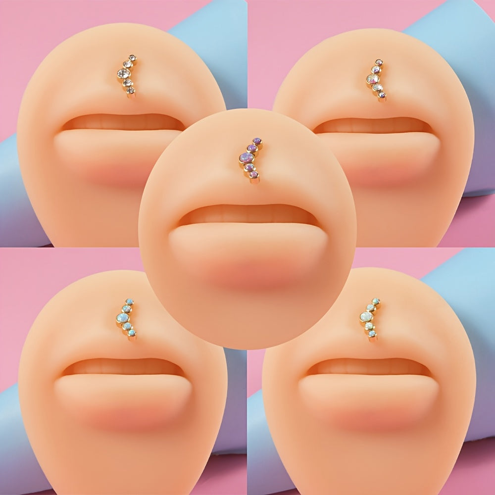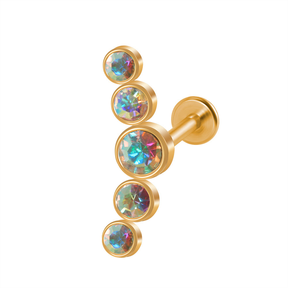 Elevate your style with this stunning colorful zircon inlaid cartilage piercing jewelry. Made of high-quality stainless steel with 18K plating, this piece adds a touch of elegance to your look.