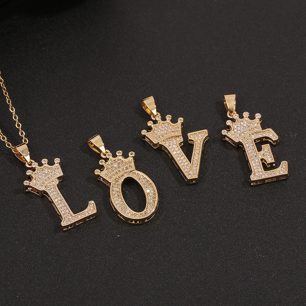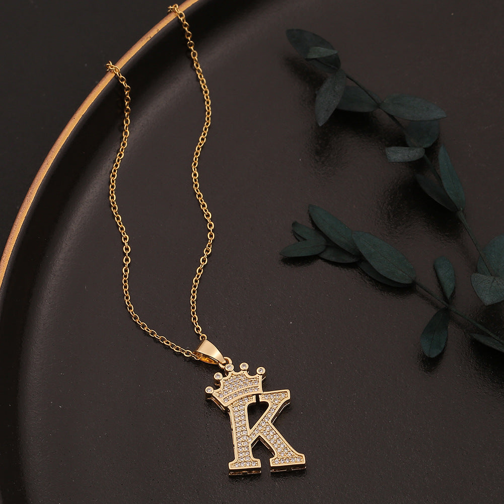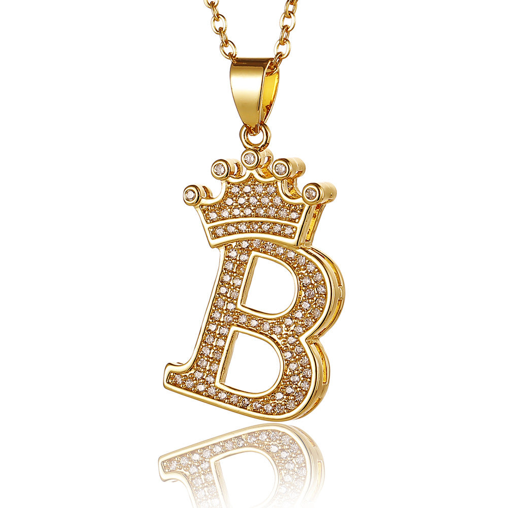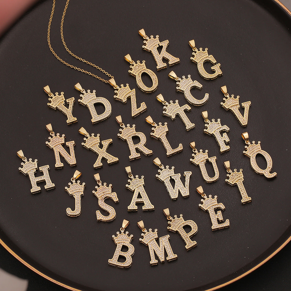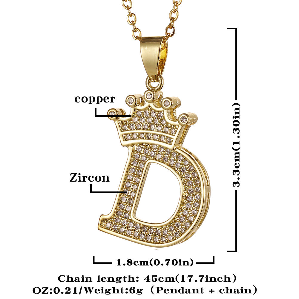 This women's necklace features a crown English letter pendant made of real plated copper, perfect for adding a touch of personality to any outfit. It is a versatile piece that can be worn on any occasion and makes a great gift for women.