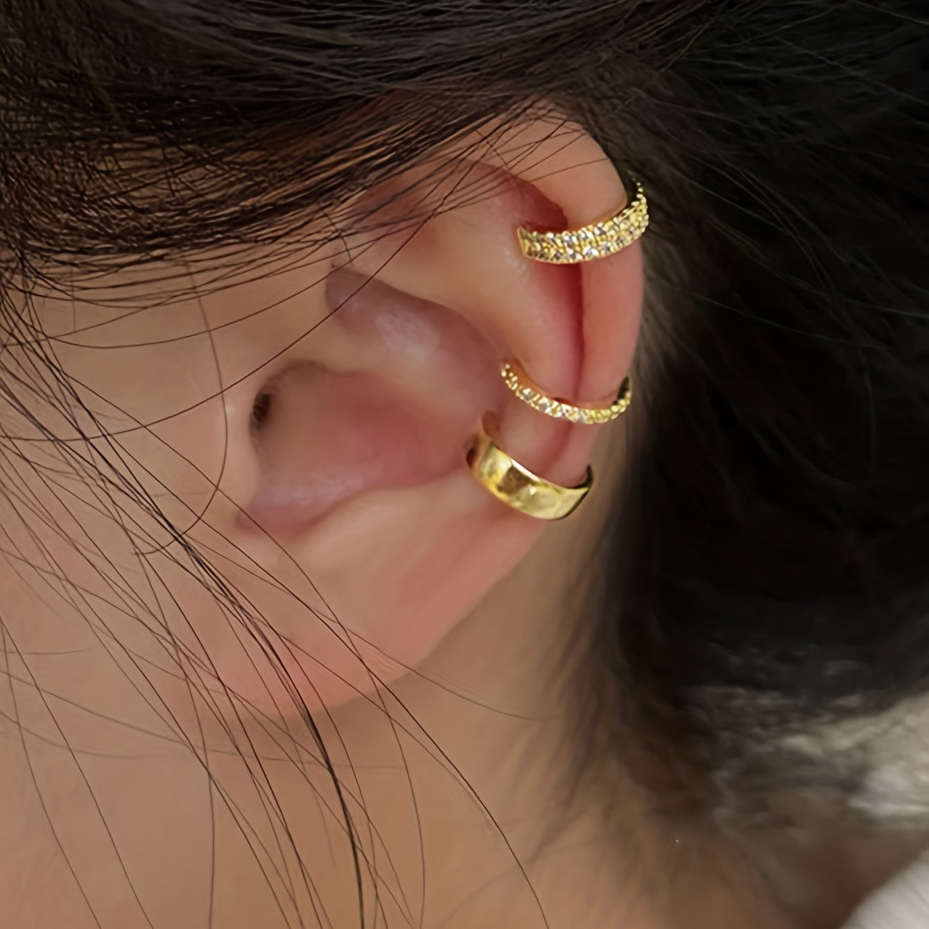 This stunning ear cuff is adorned with golden and silver artificial crystals, making it a perfect accessory for women and girls. Ideal for adding a touch of glamour to any outfit.