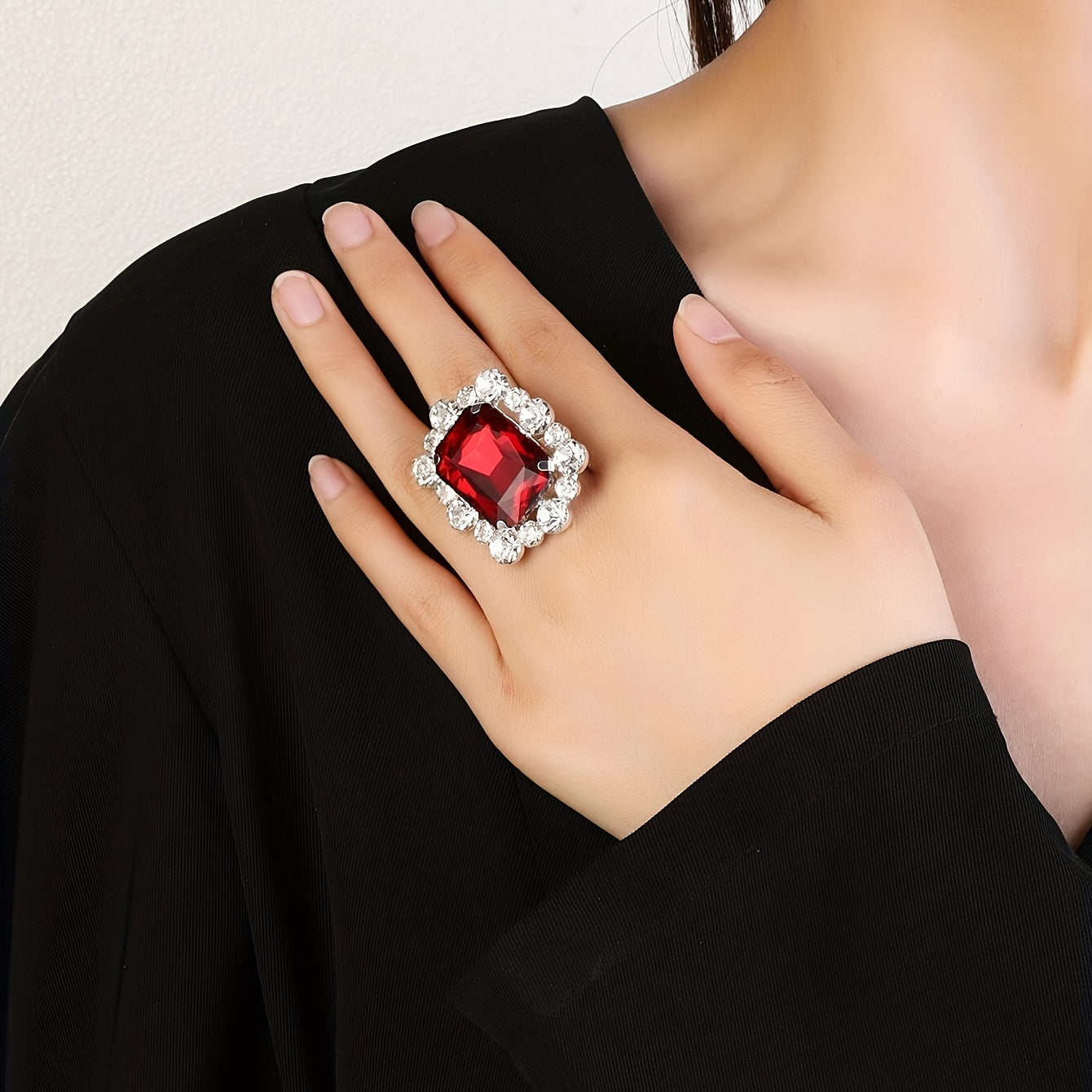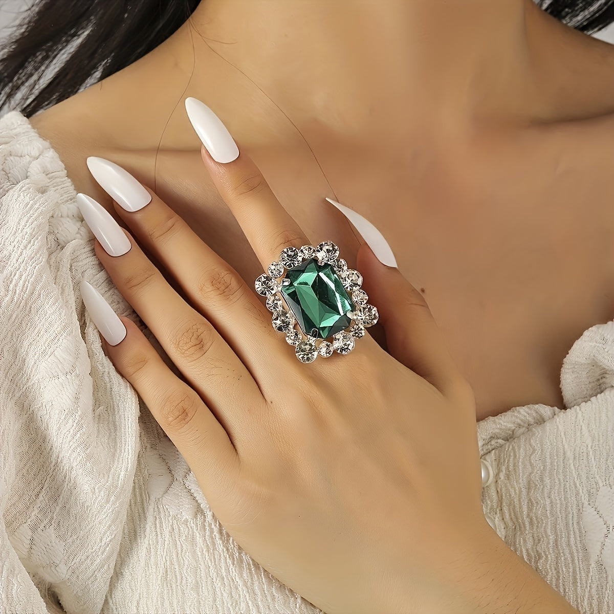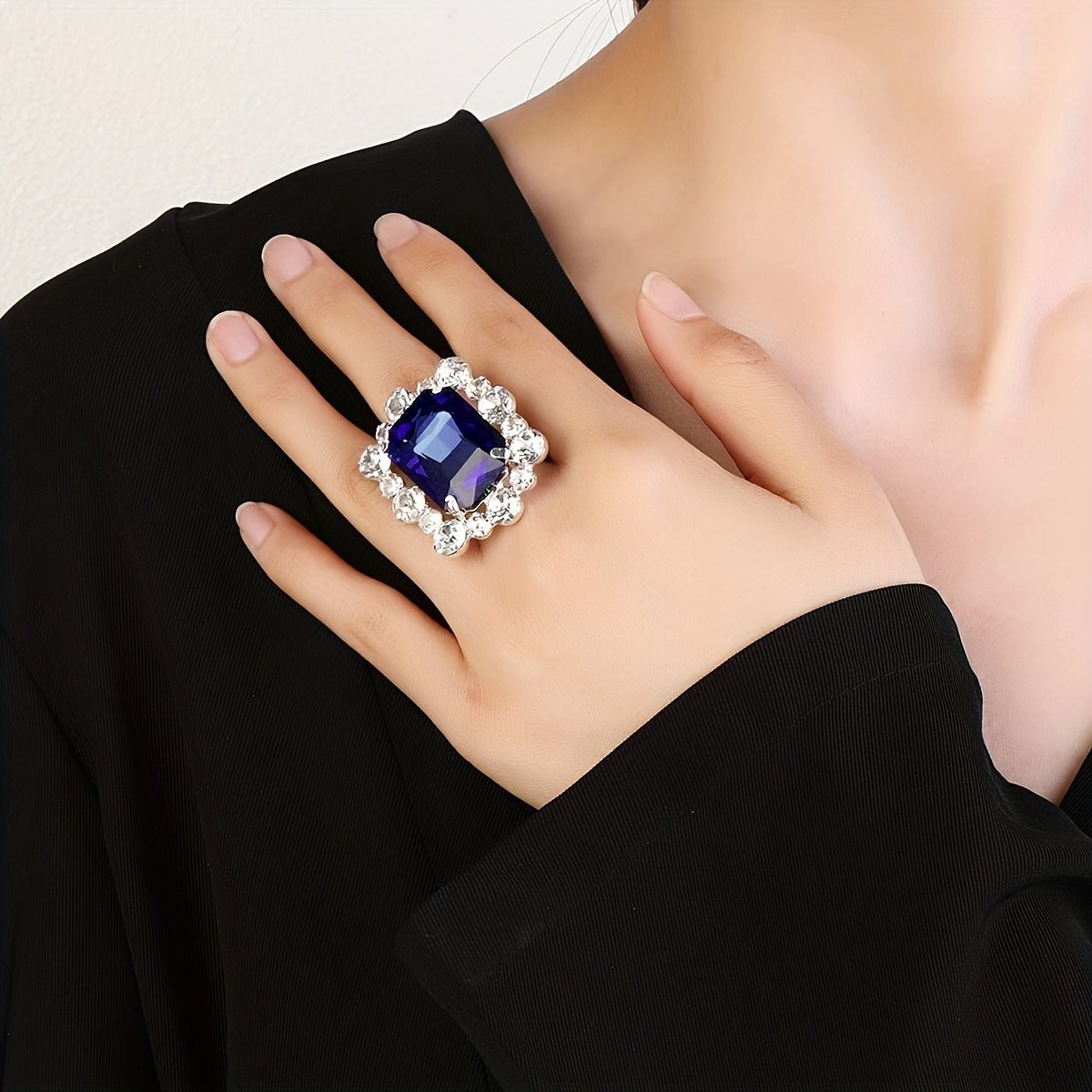 Make a statement with this glamorous crystal finger ring, perfect for bridal wear.