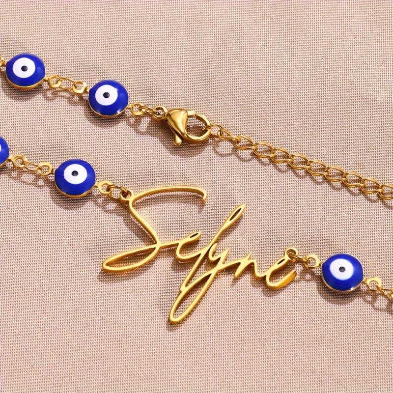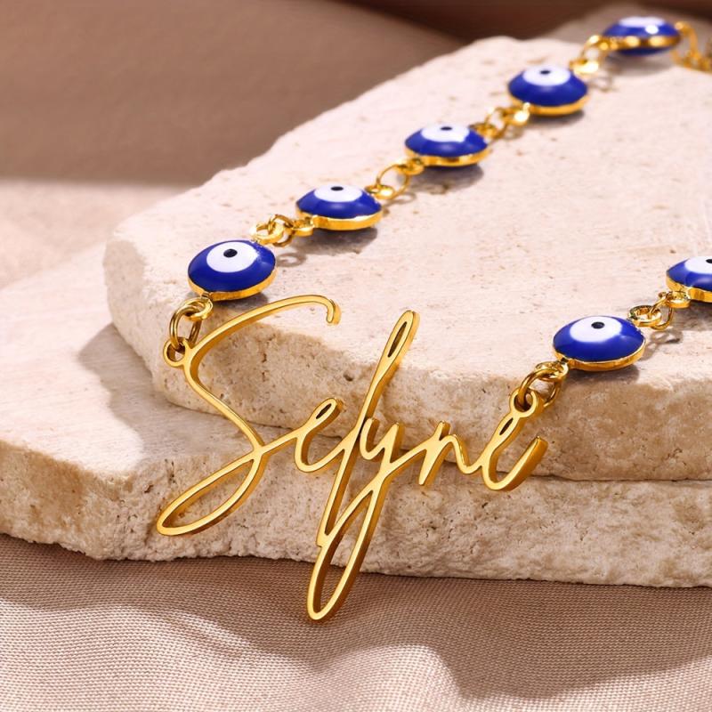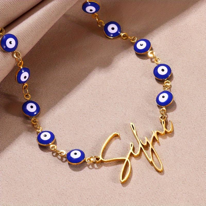 This personalized amulet eye name necklace is a perfect gift for women and friends. The unique design makes it a special and meaningful piece of jewelry.