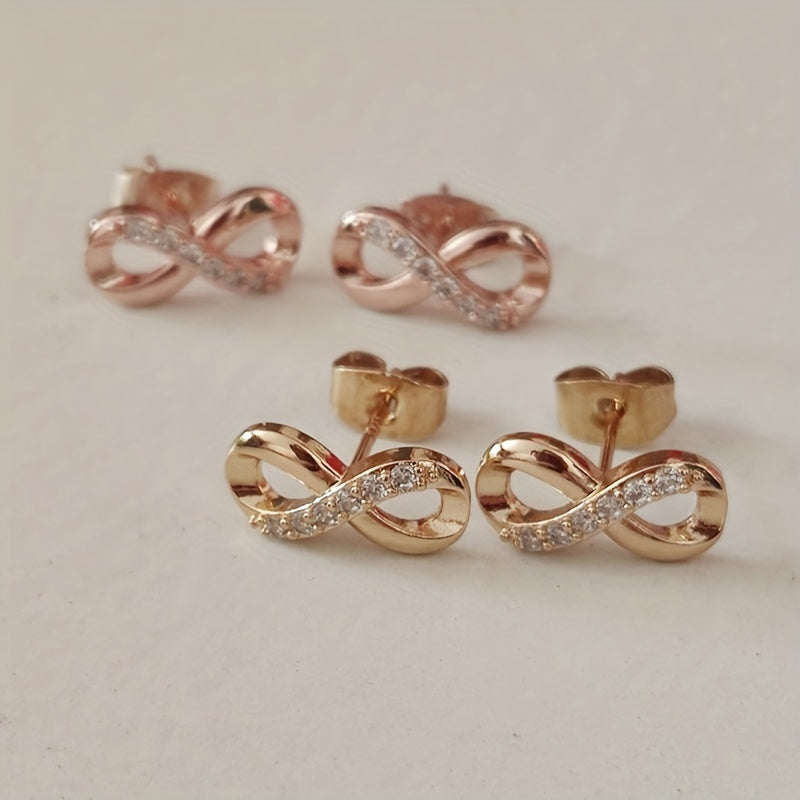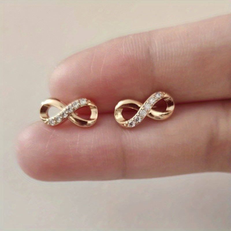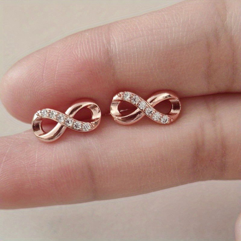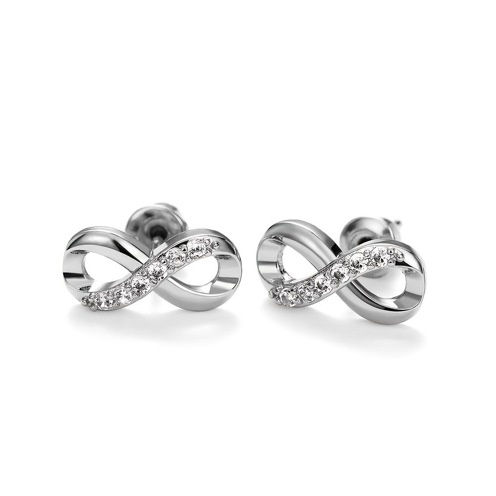 CZ Infinity Stud Earrings, Silver Plated Jewelry 1Pair