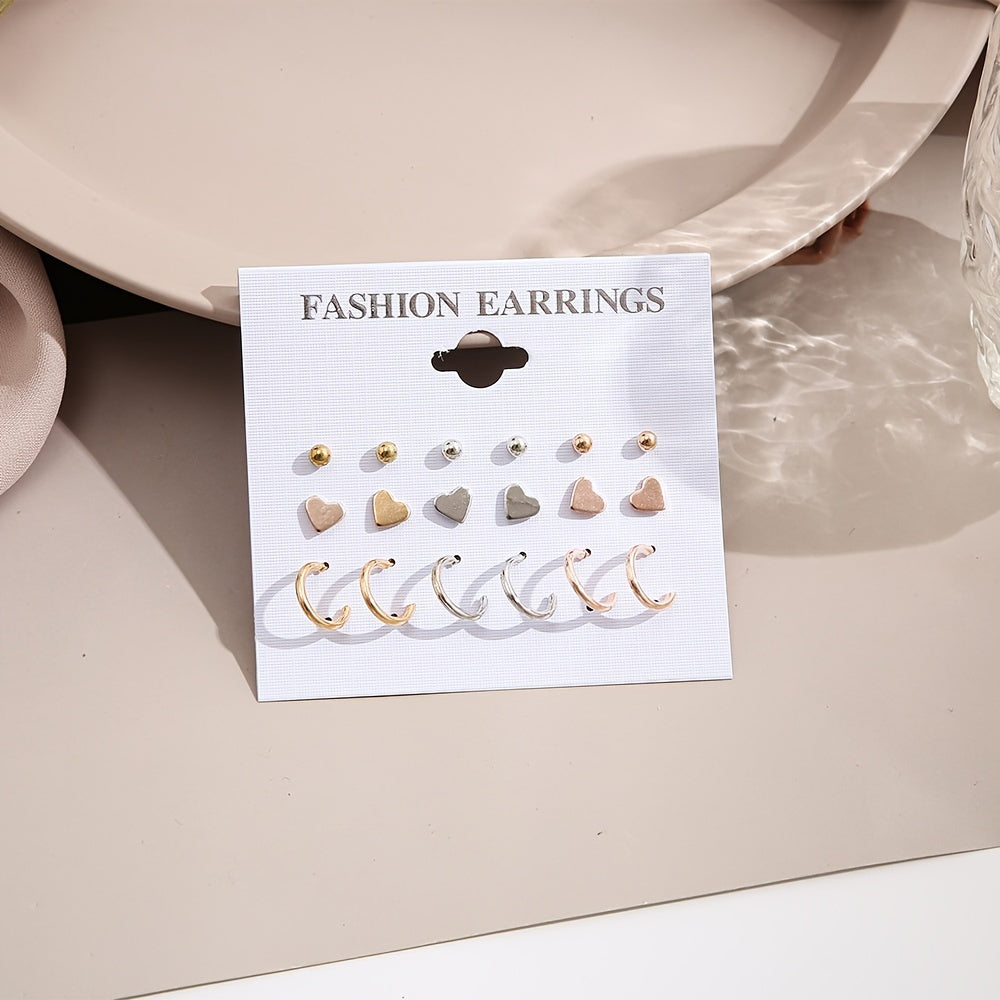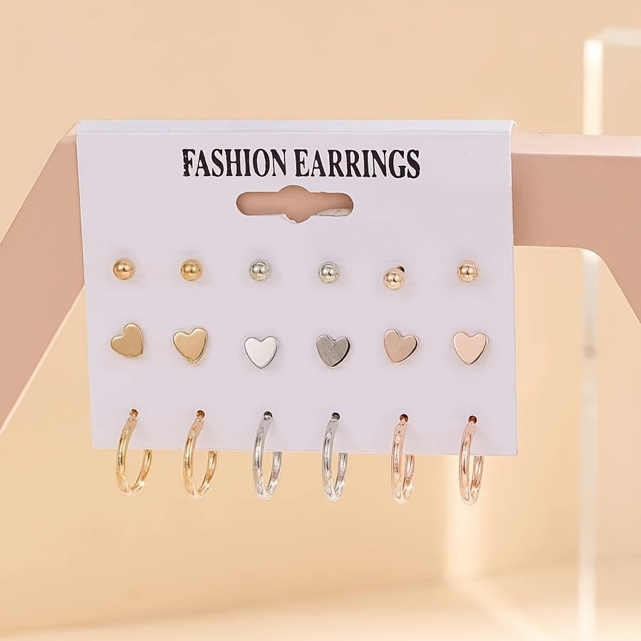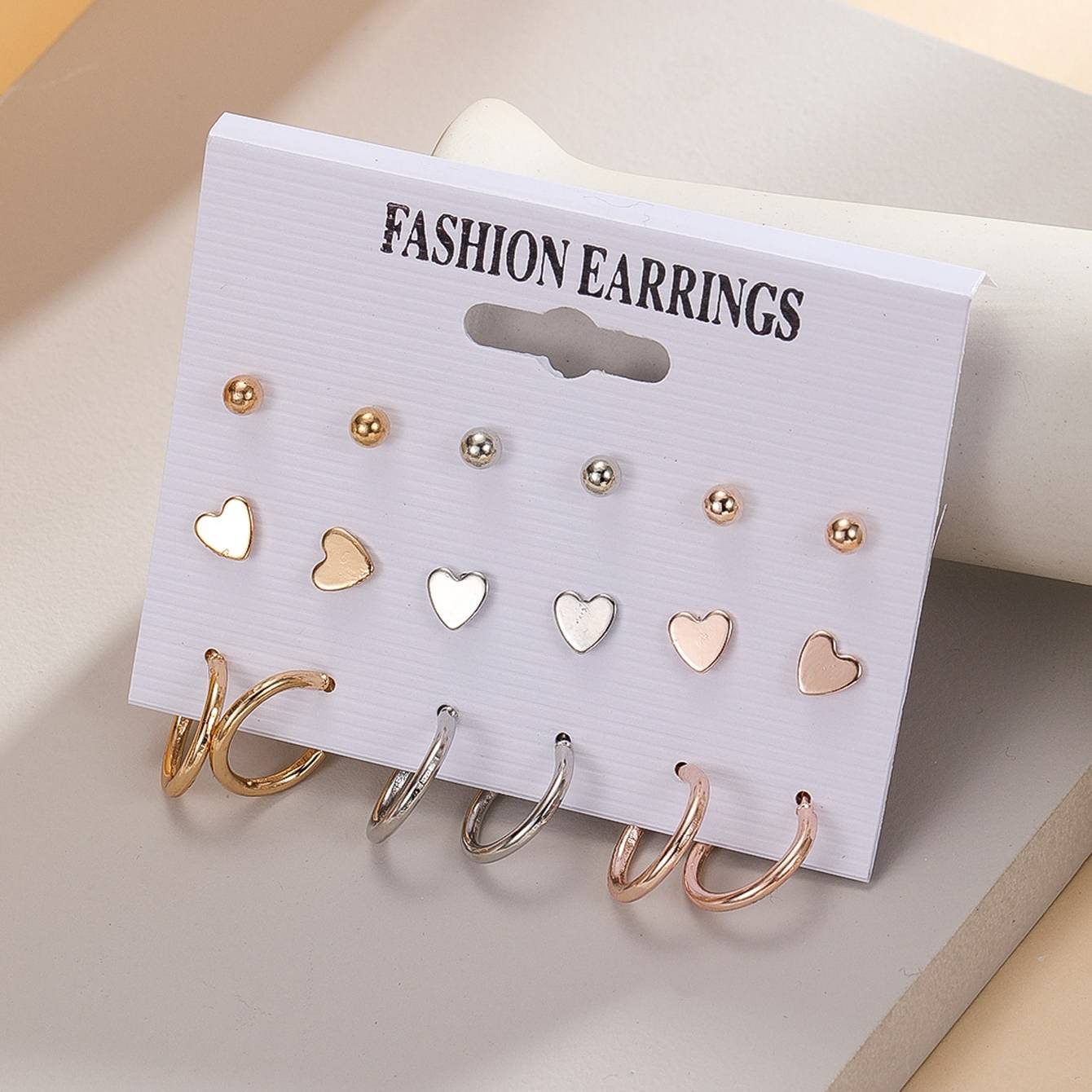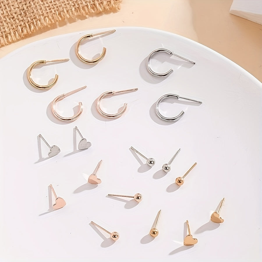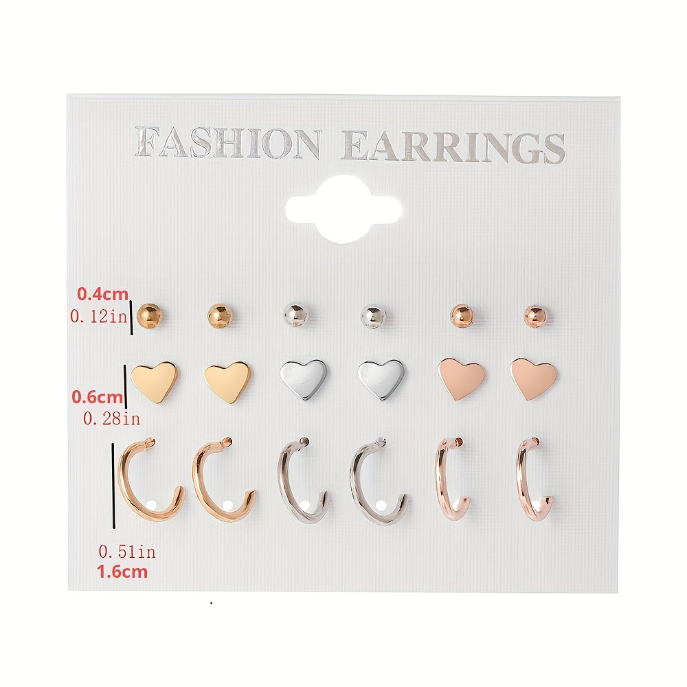 Elevate your style with this set of shaped stud earrings, perfect for daily wear or special occasions. The set includes a variety of designs to match any outfit or mood.