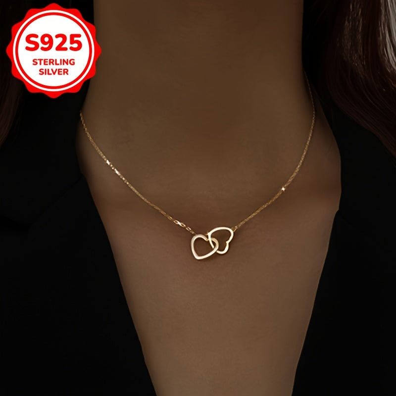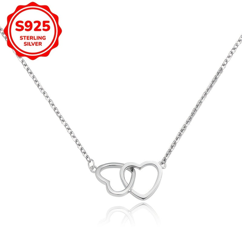 Diese elegante Halskette für Doppelherzheime wird aus 925 Sterlingsilber hergestellt, wodurch sie perfekt für lässige Kleidung oder als nachdenkliches Geschenk für jemanden, der etwas Besonderes ist, perfekt ist.