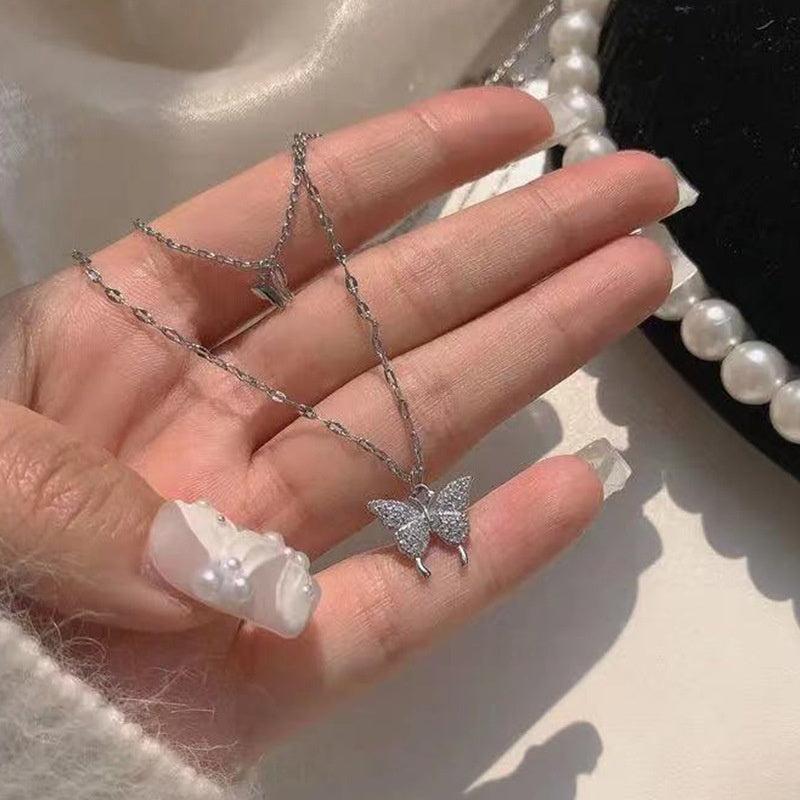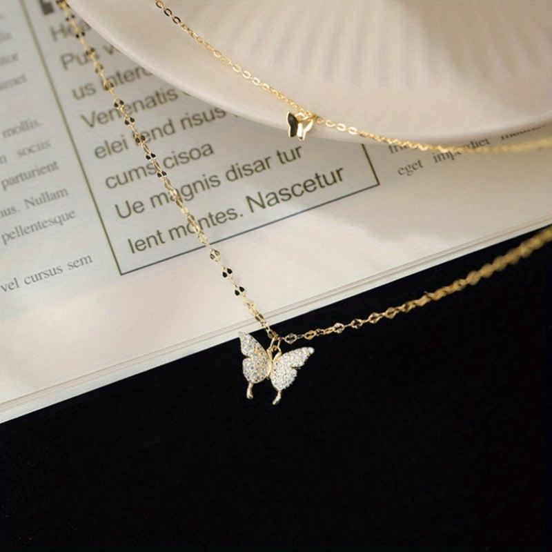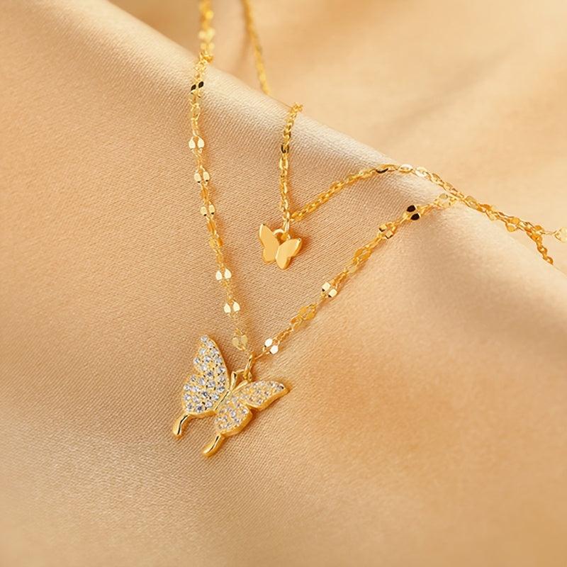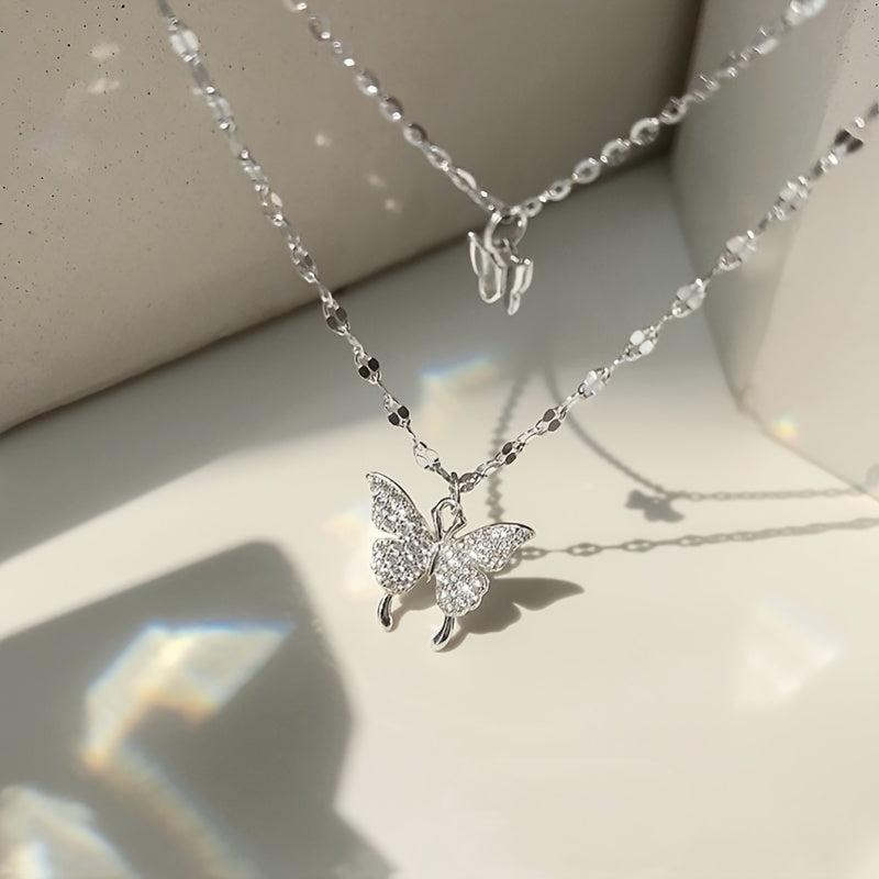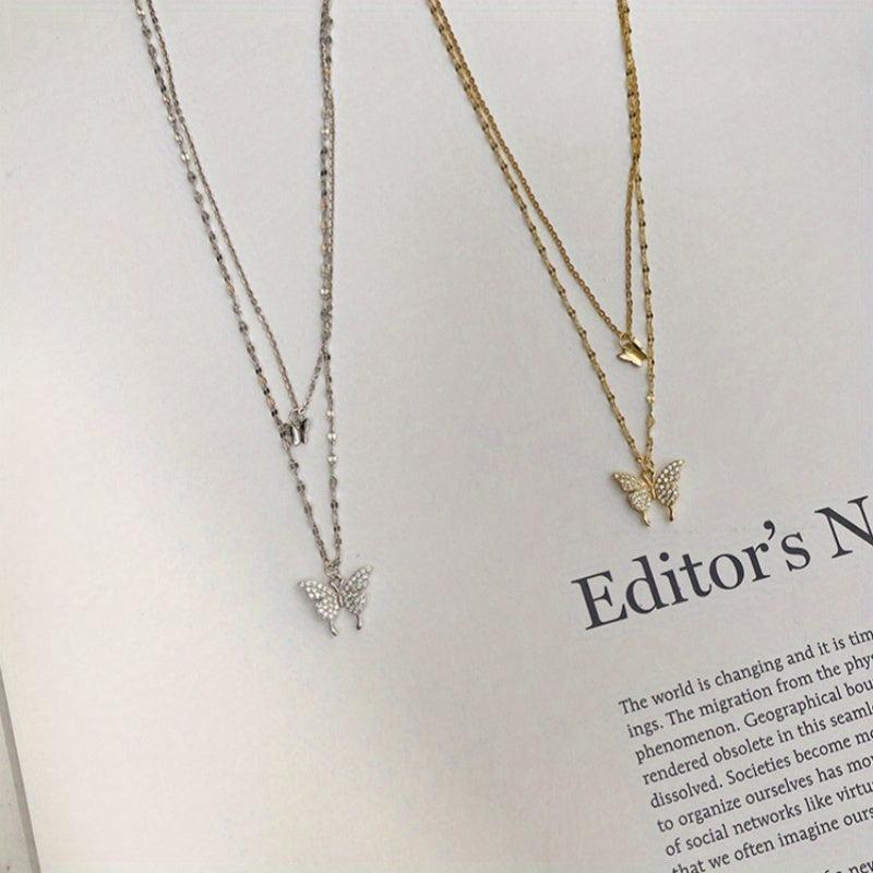 Elegant and versatile 2 piece women's necklace featuring a butterfly design. Perfect for stacking or wearing alone, this necklace adds a touch of whimsy to your outfit.