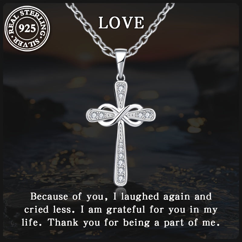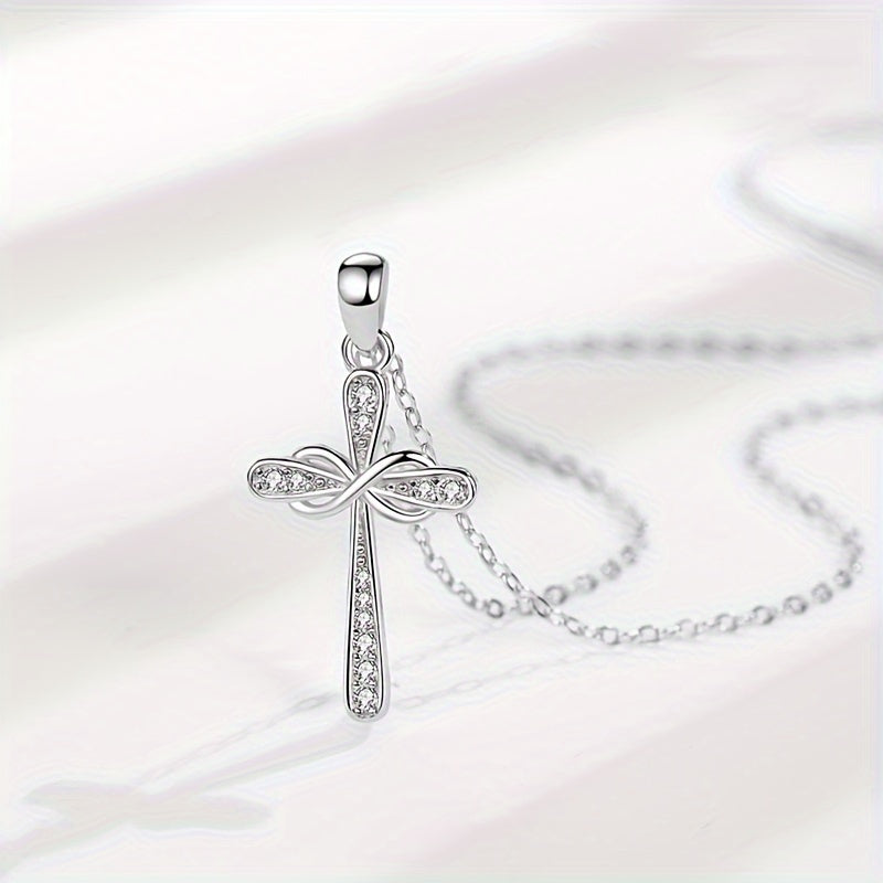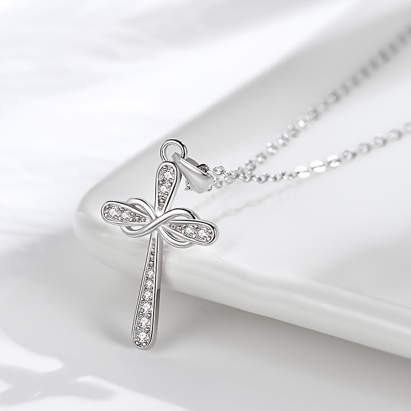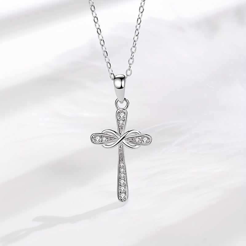 Fügen Sie Ihrem Outfit mit dieser Halskette dieser Frauen einen Hauch von Mode und Eleganz hinzu. Dieses stilvolle Stück ist perfekt für Ferien oder als nachdenkliches Geschenk zum Muttertag, das ein eingelegtes Zirkoniakreuz in einer unendlichen 8 -Form -Form bietet.