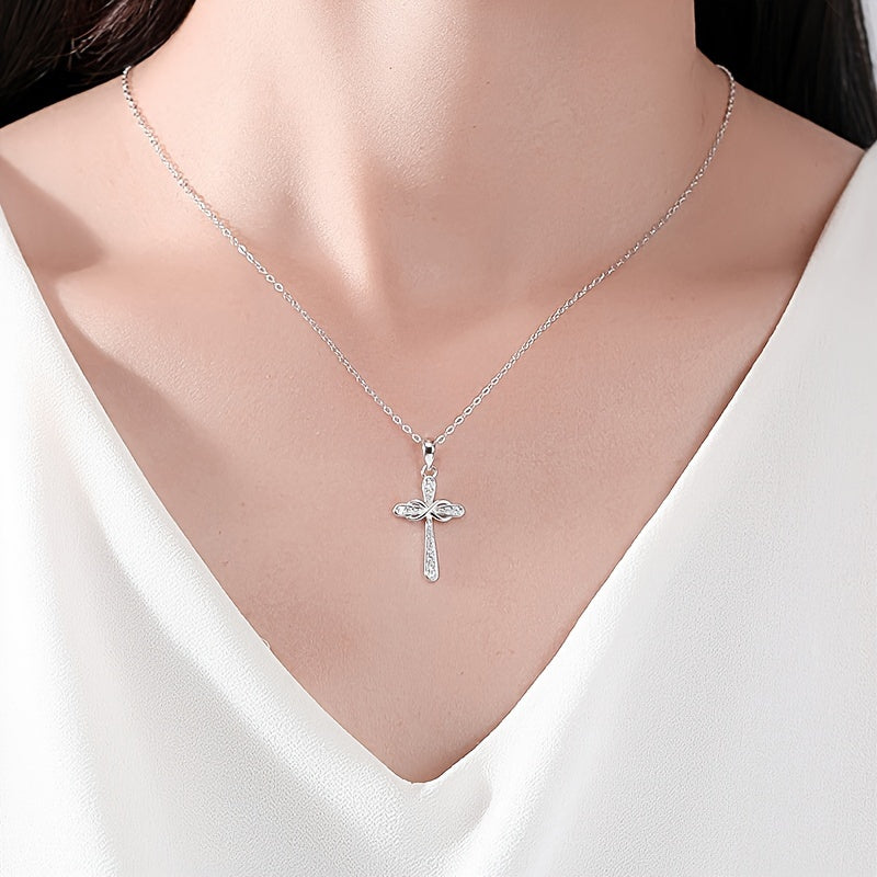Elegant Zirconia Cross Pendant Necklace 925 Silvery 3.6g