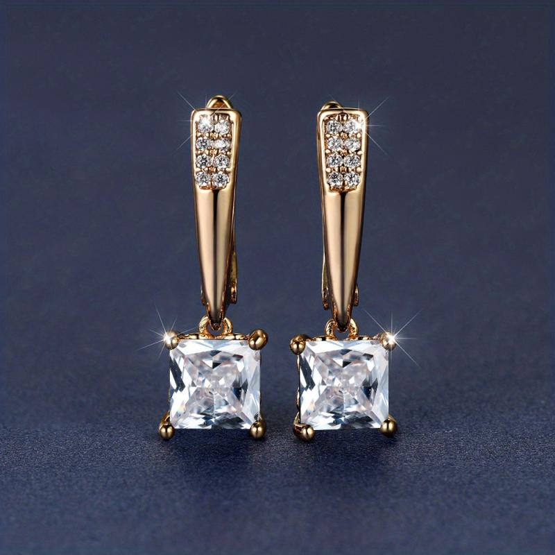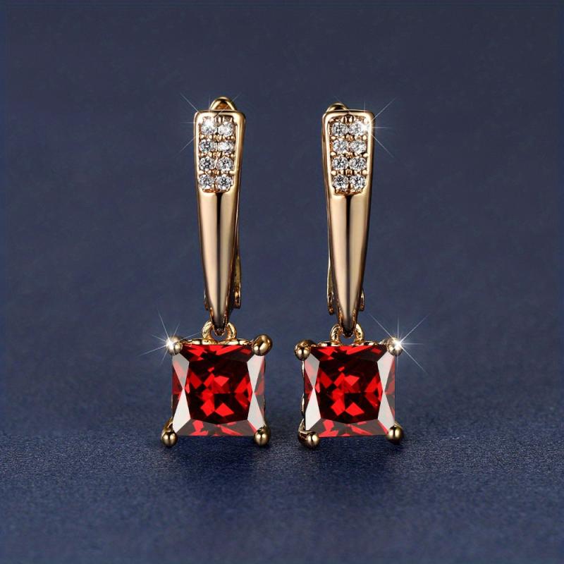 Add a touch of elegance to your daily look with these emerald earrings. The square cut stones are beautifully set in 18K plated ornament that sparkles in the light.