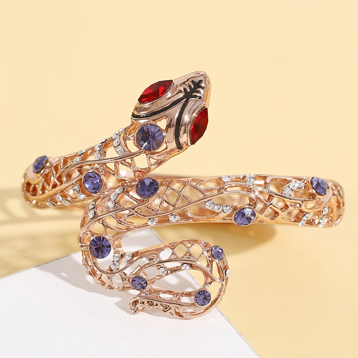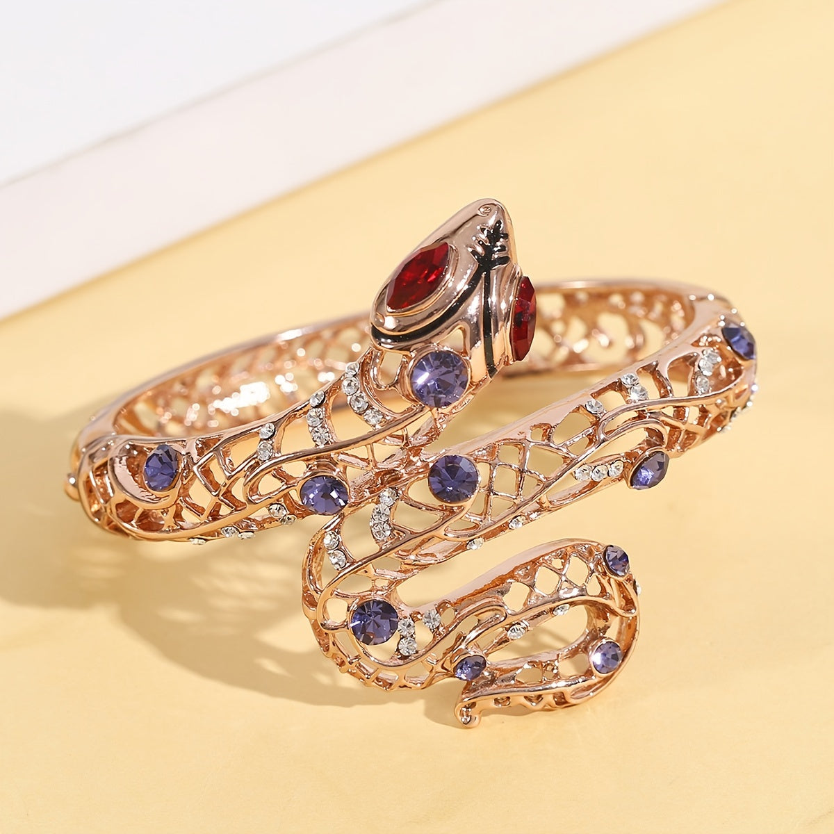 Exaggerated Snake Bangle Colorful Rhinestones Bangle Bracelet Women