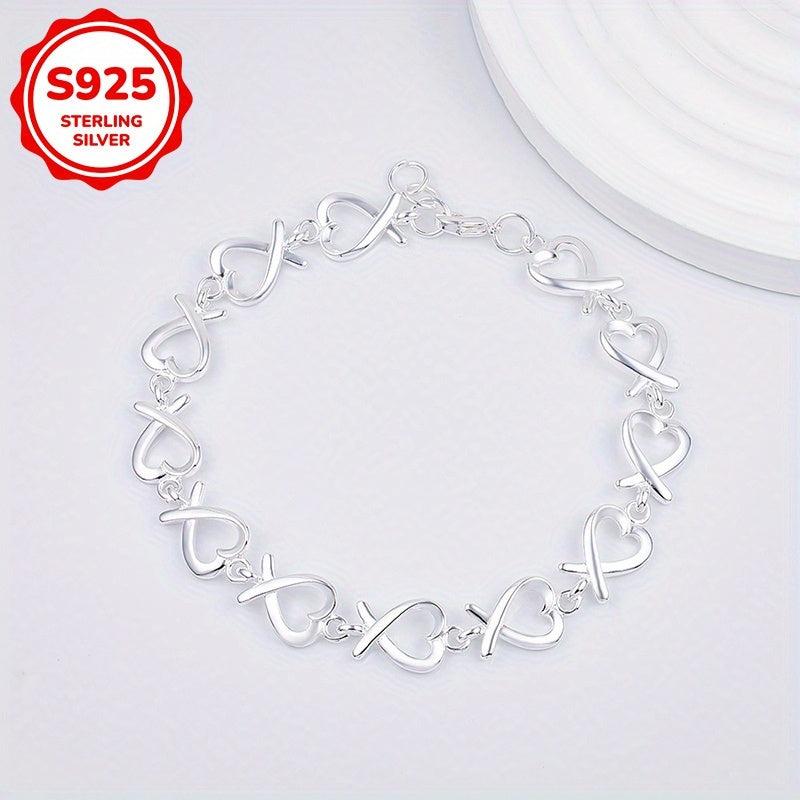 Add a touch of elegance with this fashionable bracelet. The hollowed-out heart cross design adds a chic and trendy look. Made of 925 Silver, it's perfect for daily wear or special occasions.