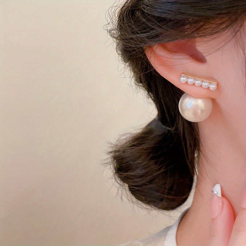 These elegant stud earrings feature faux pearl decoration in Japanese style. Made from copper and plated with 18K gold, these earrings are a perfect gift for females.