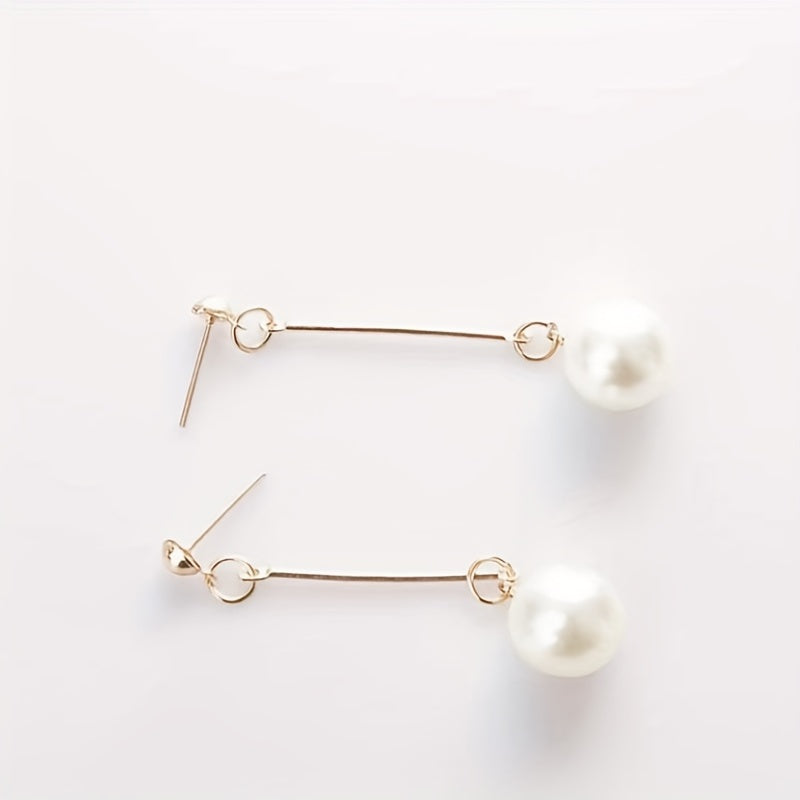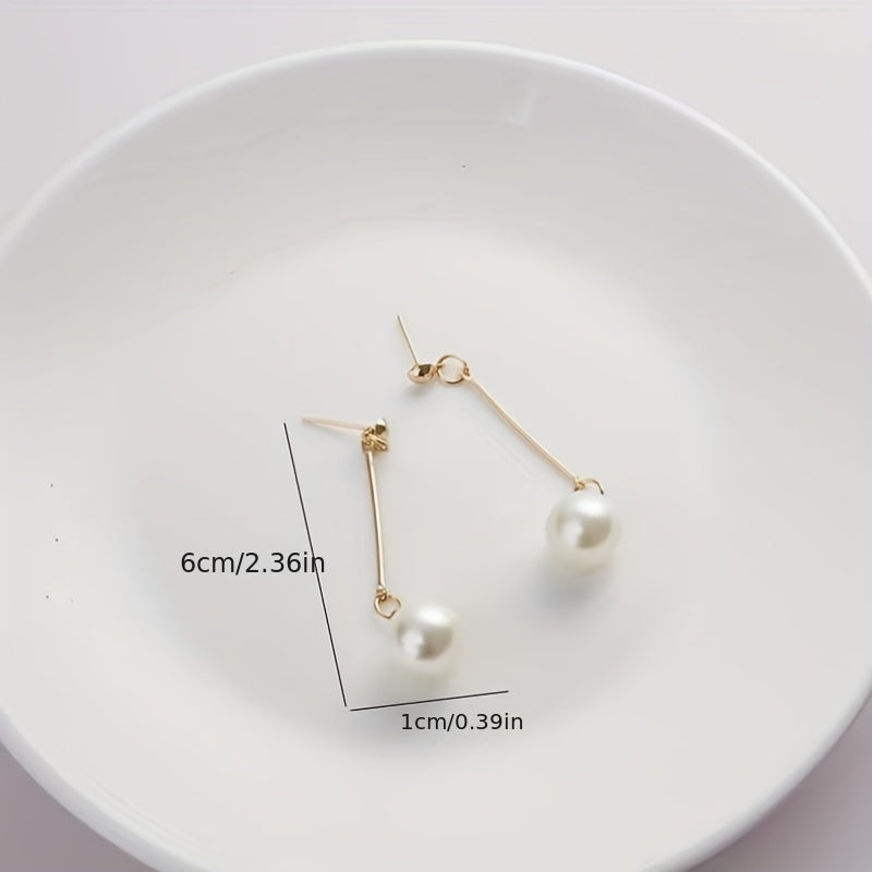 These long dangle earrings feature faux pearl decoration, perfect for daily casual wear. Ideal for women and girls as a delicate gift.