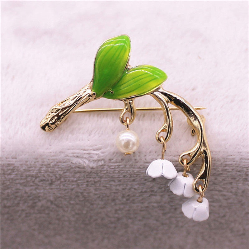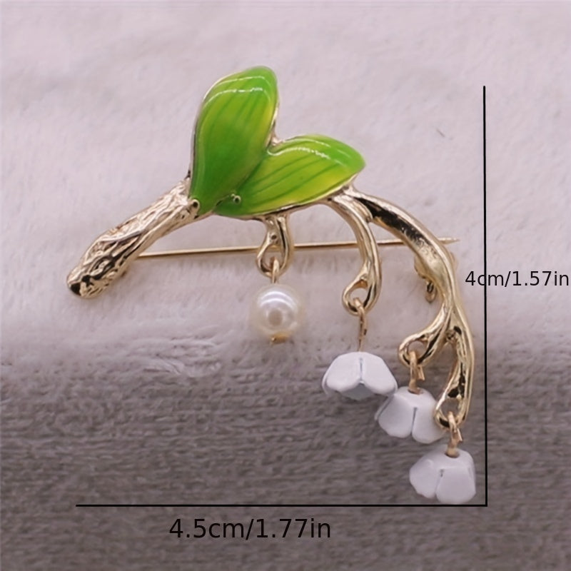 Add a touch of elegance with this beautiful floral leaf brooch featuring lily of the valley design. Perfect accessory for any occasion.