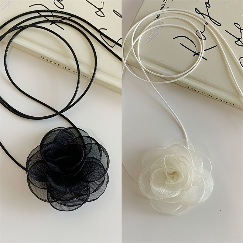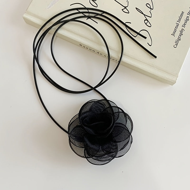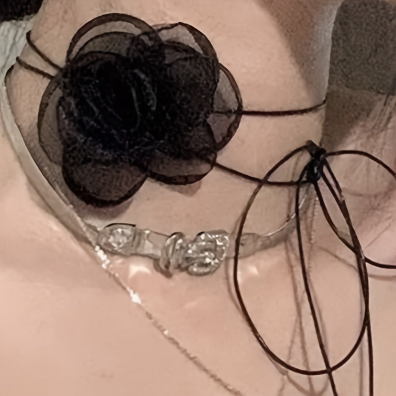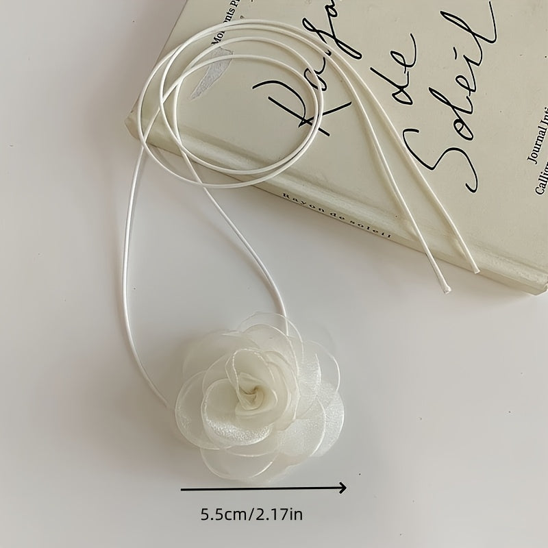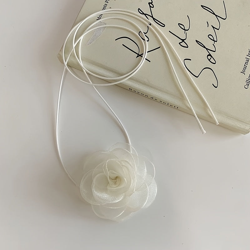 This adjustable collarbone chain features a minimalist design with a rose pendant. It can also be used as a hair tie accessory.