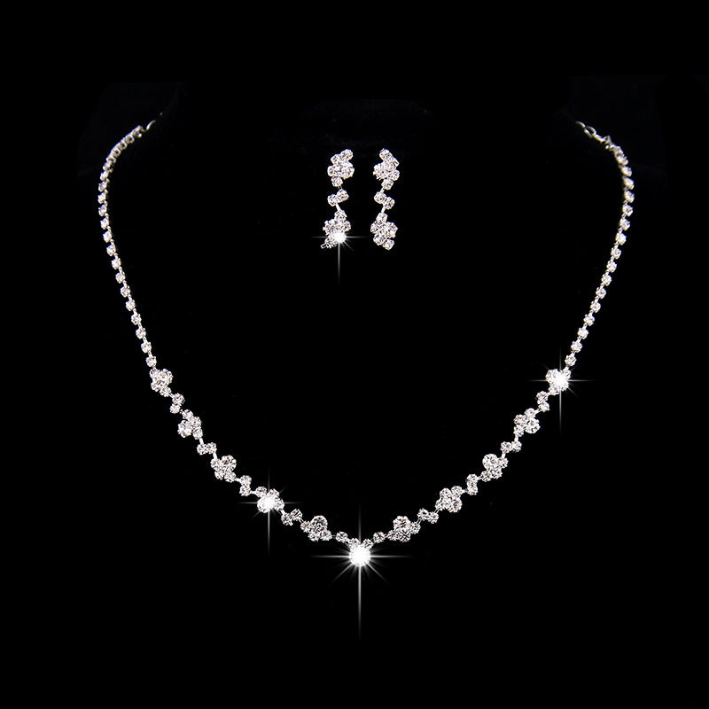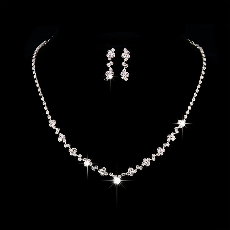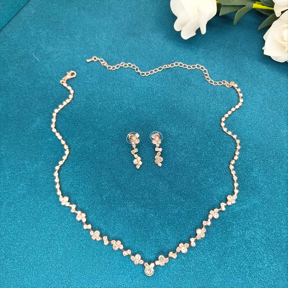Flower Rhinestone Jewelry Set Necklace & Earrings