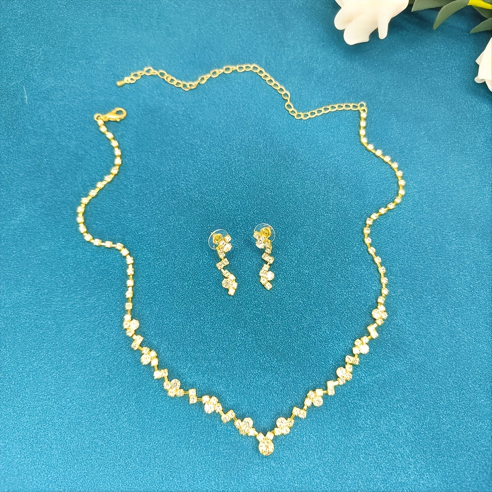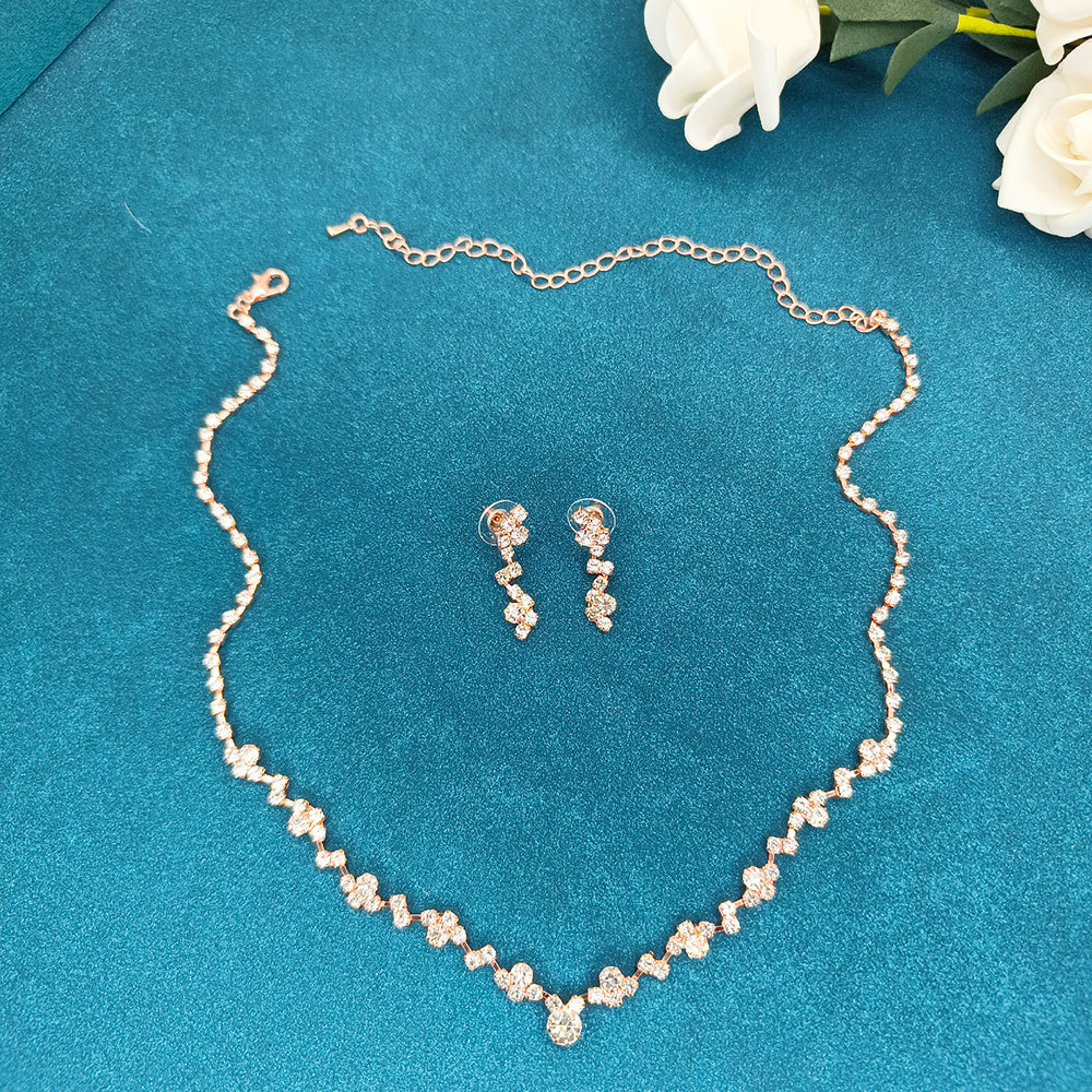 Complete your look with this elegant jewelry set featuring a flower-shaped pendant necklace and drop earrings. Perfect for weddings, parties, and special occasions.