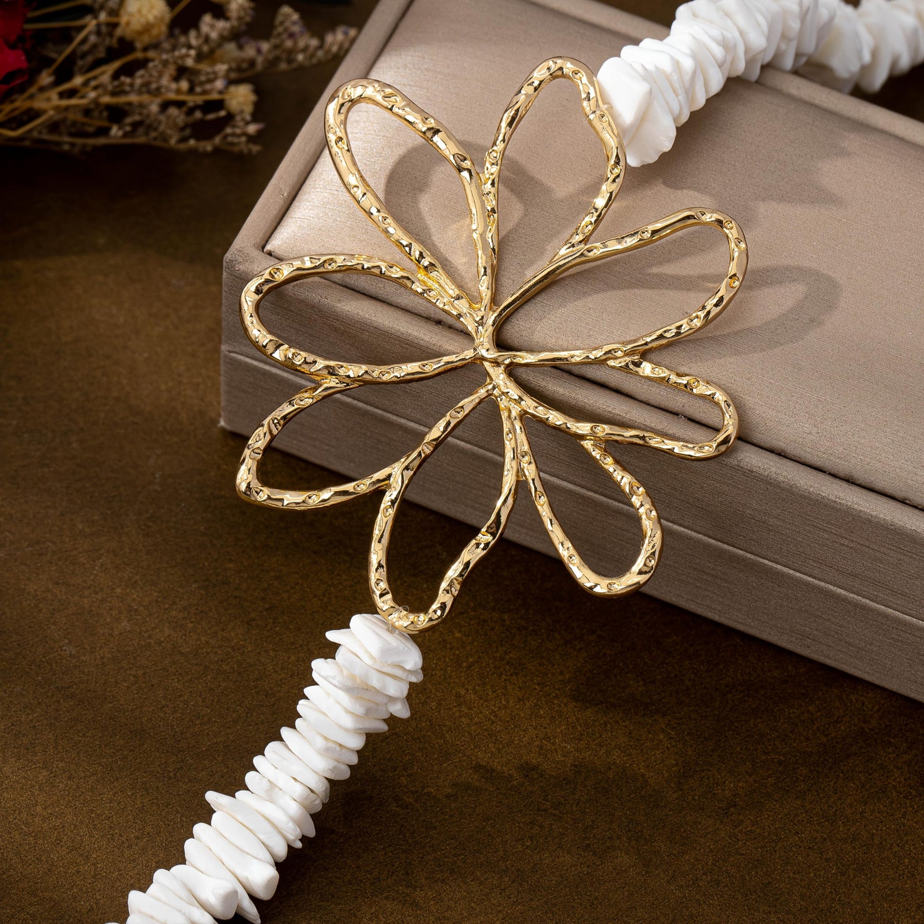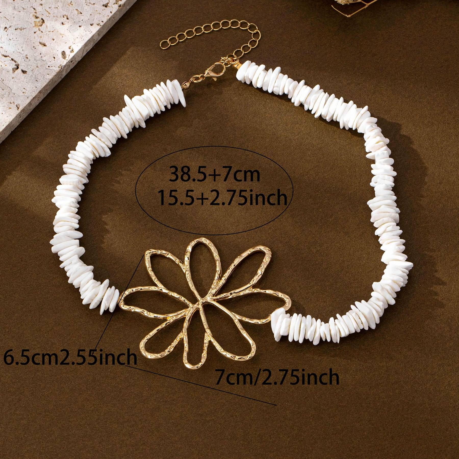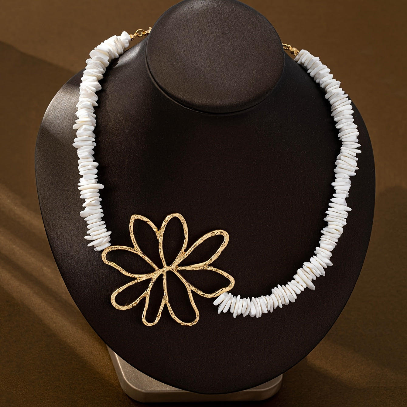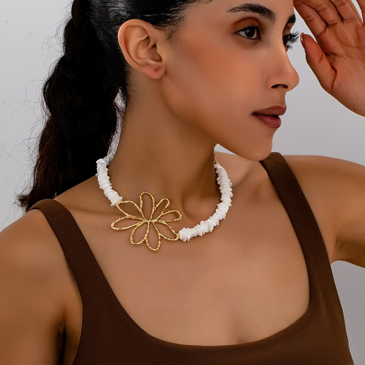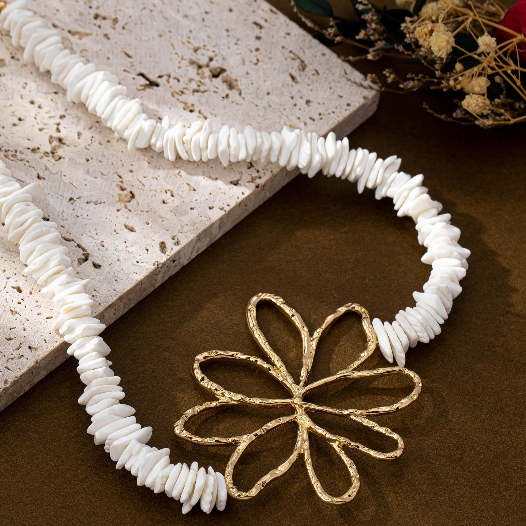 Elevate your style with this fashionable French-inspired necklace featuring crushed stone and shell accents.