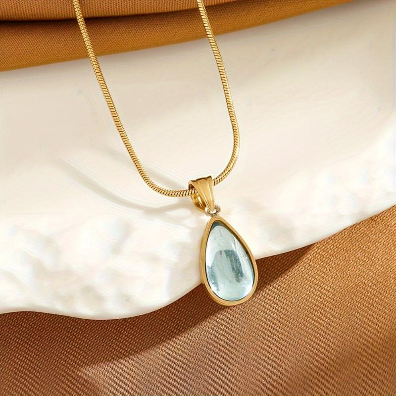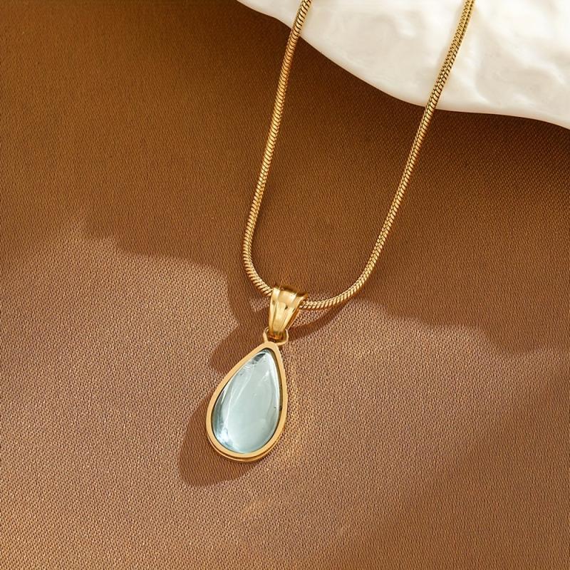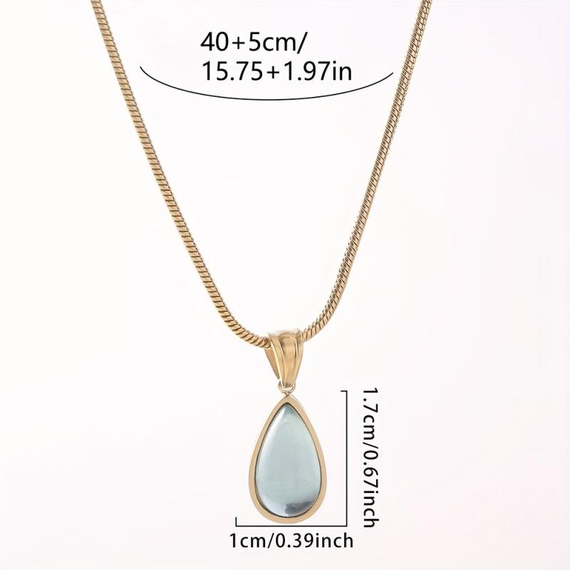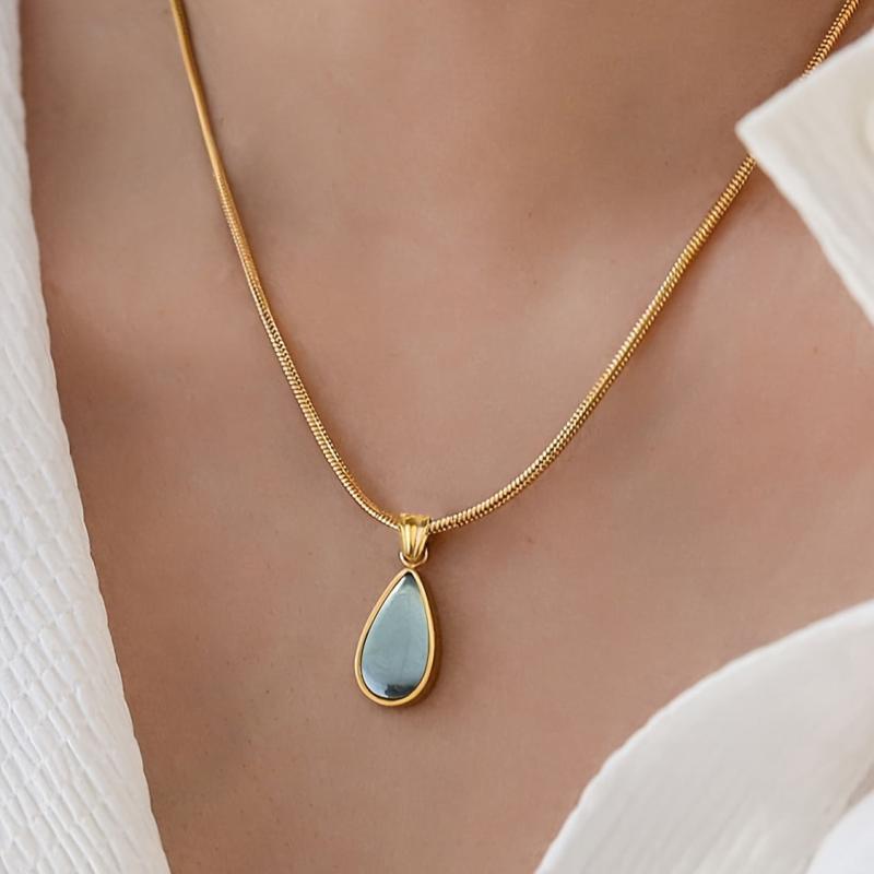 Elegant vintage French inspired necklace with water drop glass pendant. Made with 18K plated stainless steel, perfect for everyday wear and vacation outfits.
