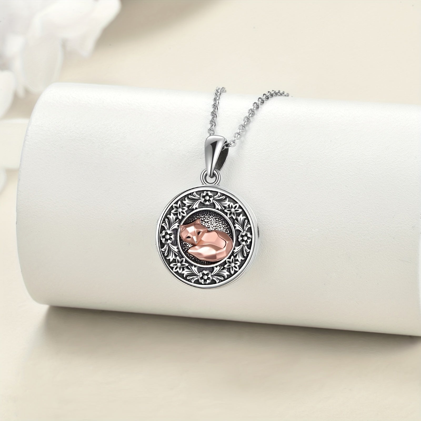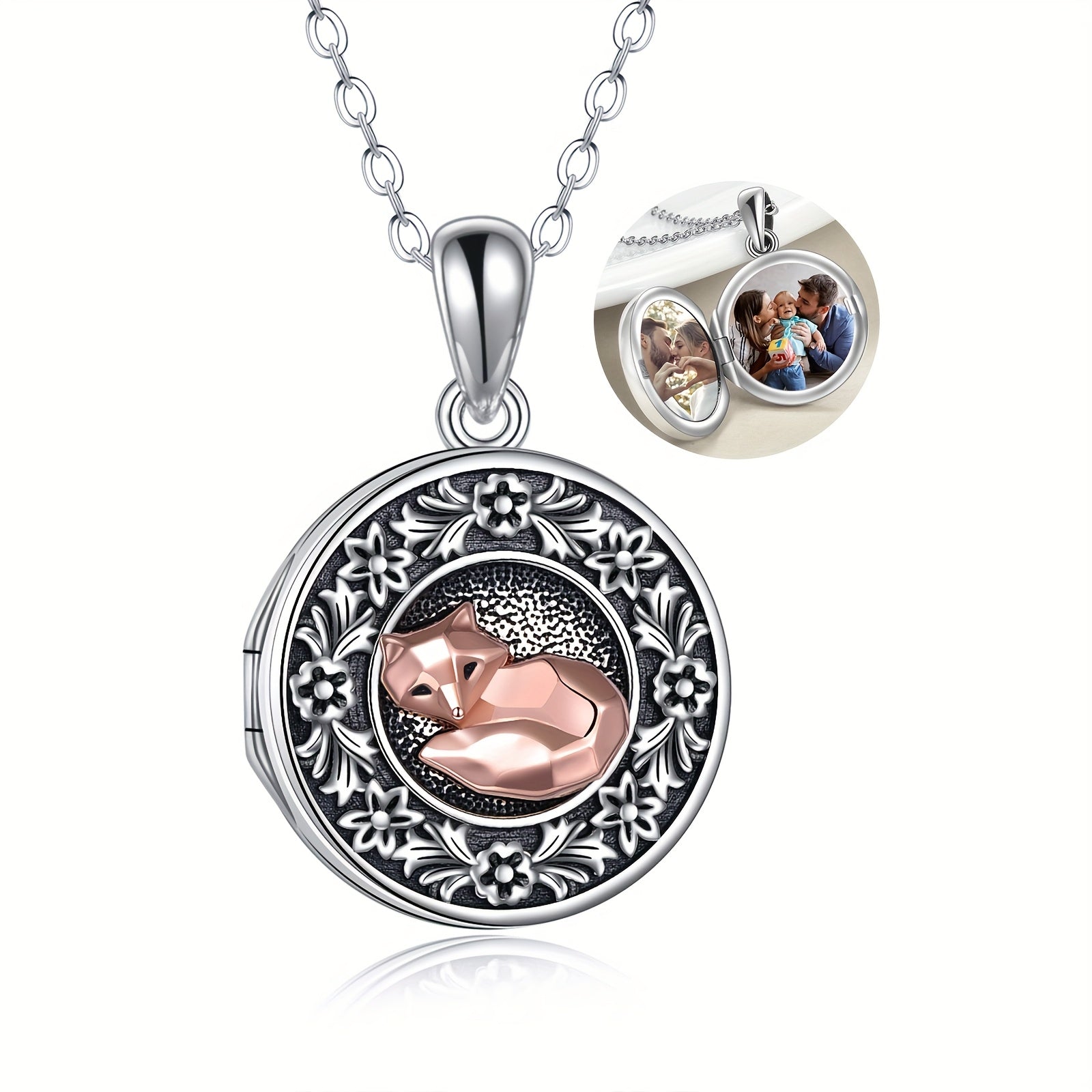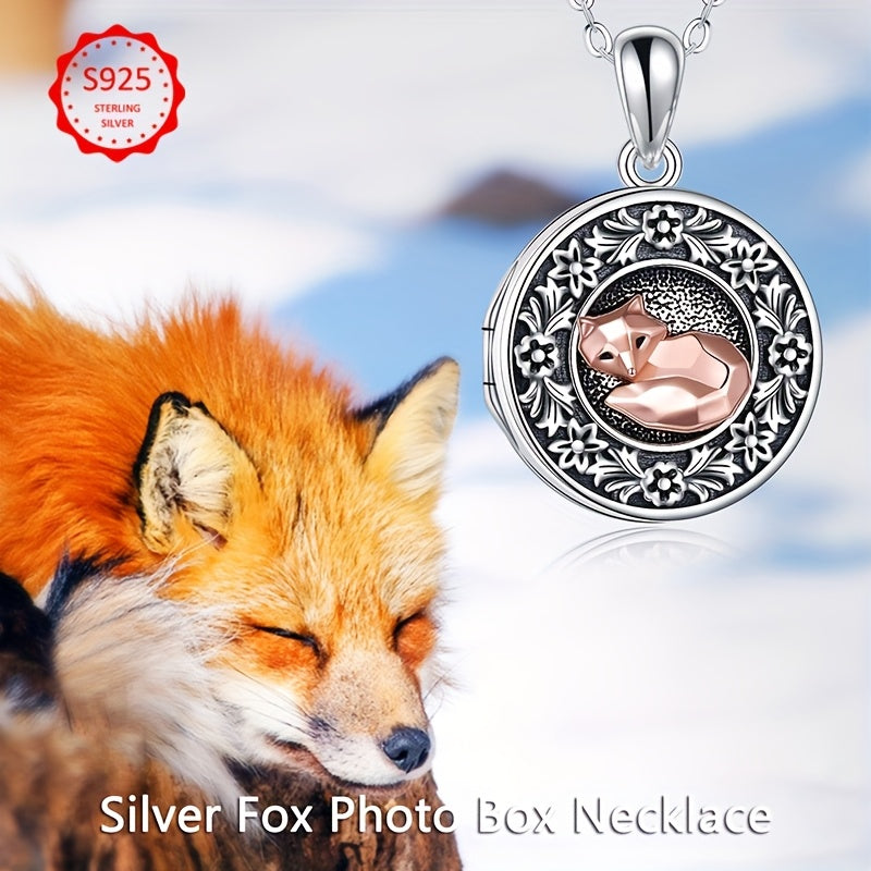 Diese elegante Fuchsanhängerkette verfügt über ein Fuchsdesign, das ein Bild einer Blume hält. Es besteht aus reinem Silber und würde ein schönes Geburtstagsgeschenk für Frauen und Mädchen machen.