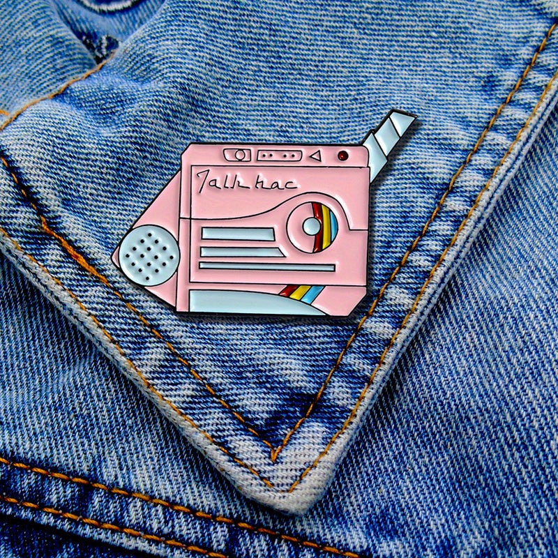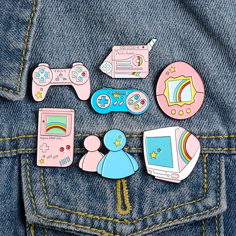 Add a touch of humor to your outfit with this creative pink dropping oil brooch pin shaped like a game machine. Perfect for casual or quirky looks.