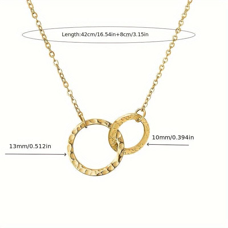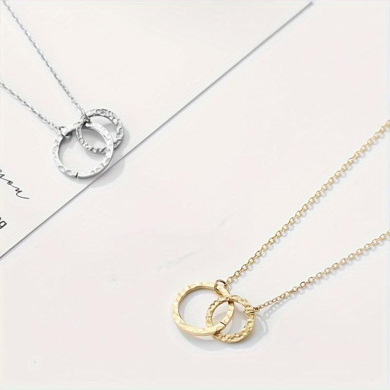 This stylish double ring pendant necklace is made of durable stainless steel. It is suitable for both men and women, making it a perfect couple's necklace.