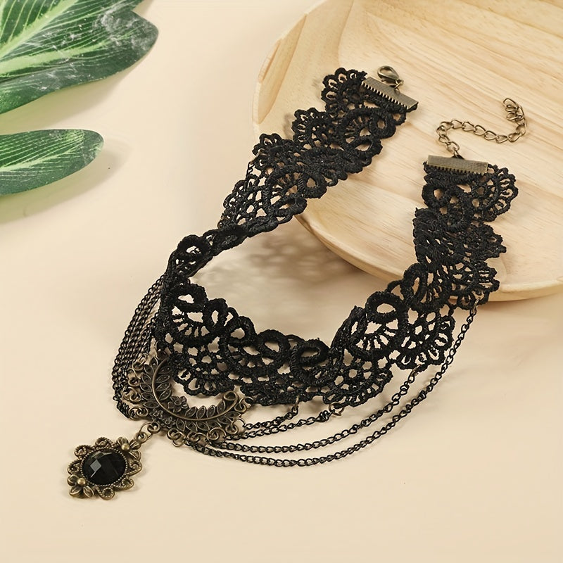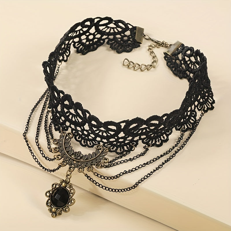 Elegant and stylish geometric multilayer lace necklace choker, perfect for parties and special occasions.