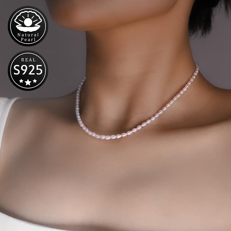 Elegant and natural, this necklace features high-quality 3-4mm rice shape freshwater pearls. Perfect for daily wear or a special date night. Comes in a gift box for easy gifting.