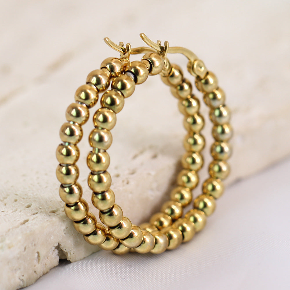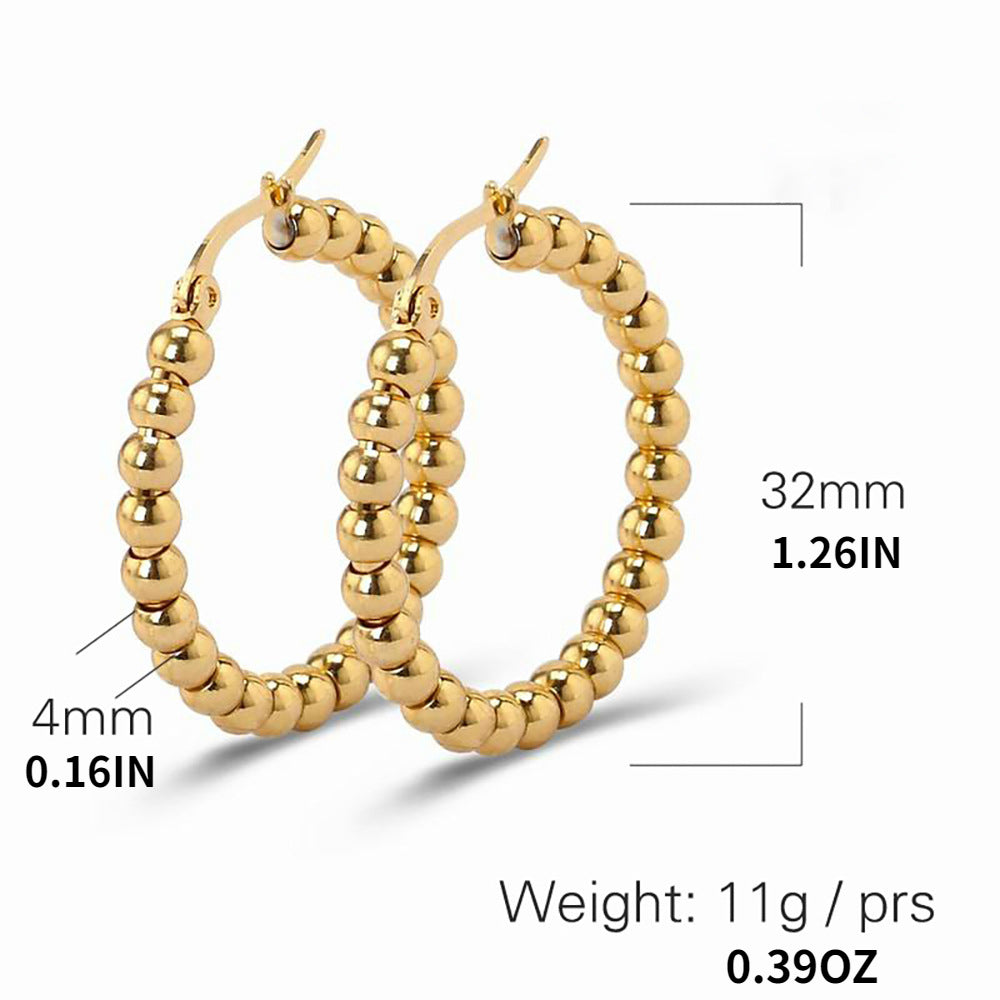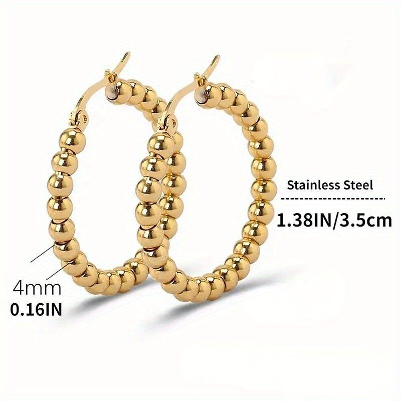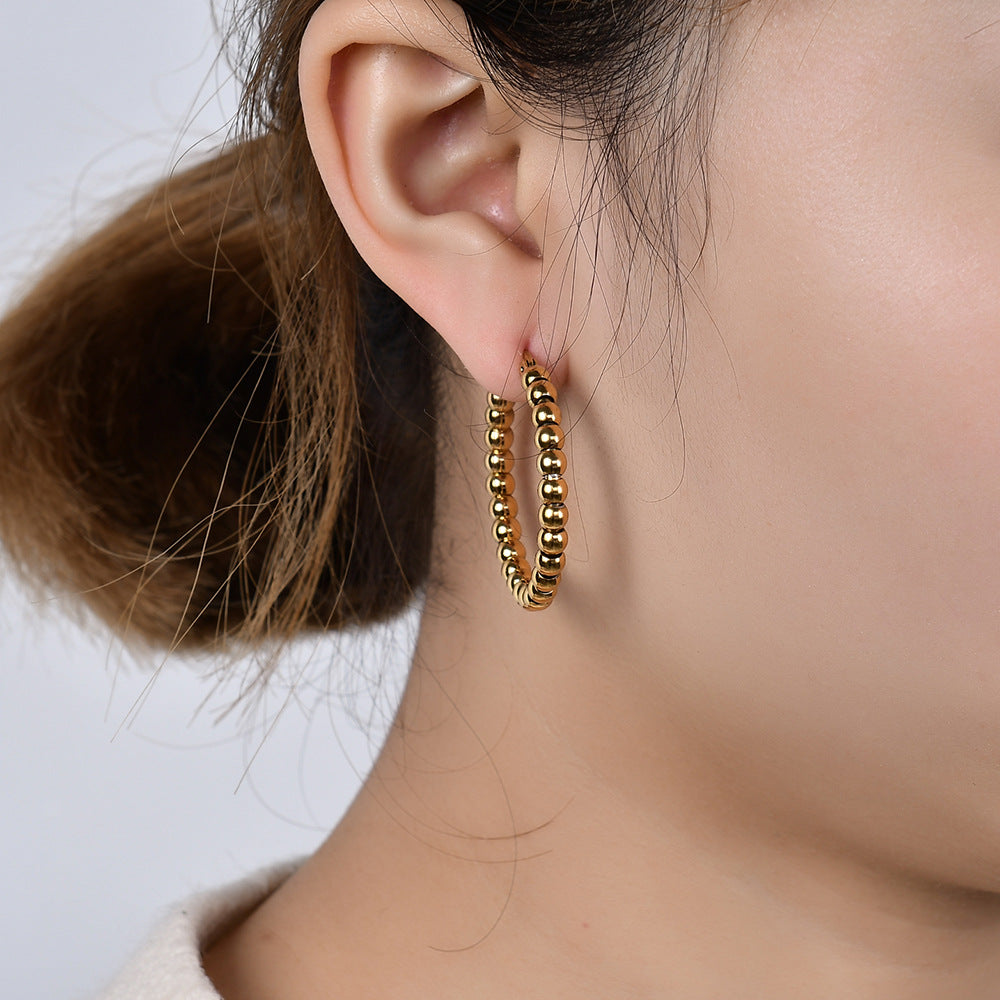 These stylish hoop earrings feature a golden bead design with 14K gold plating, adding a touch of elegance to any outfit. Perfect for girls and women with a classy taste.