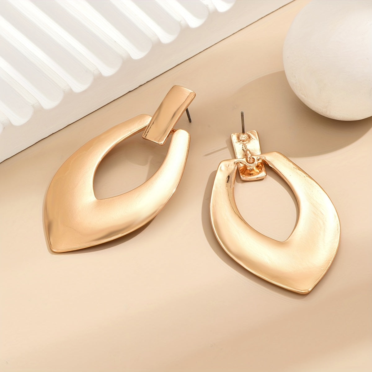 Add a touch of retro charm to your look with these golden glossy droplet dangle earrings. Made of high-quality zinc alloy, these earrings are perfect for daily wear and can easily elevate any outfit.