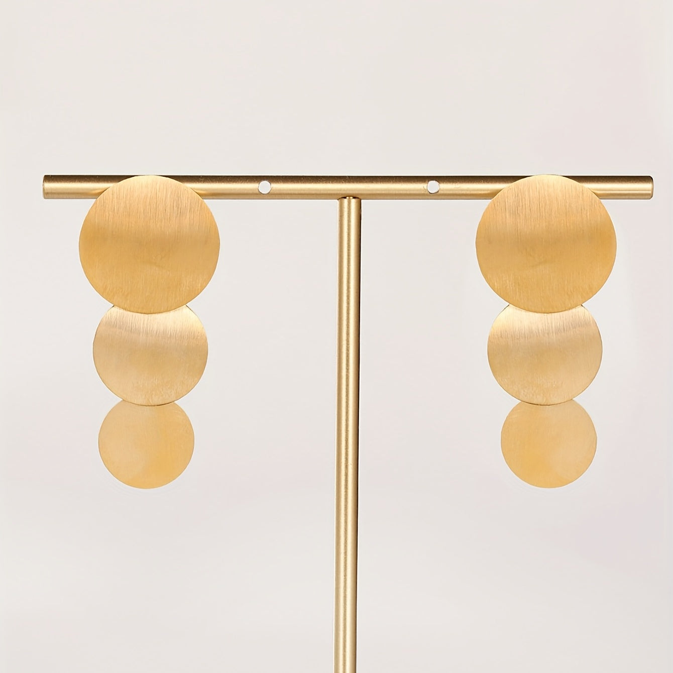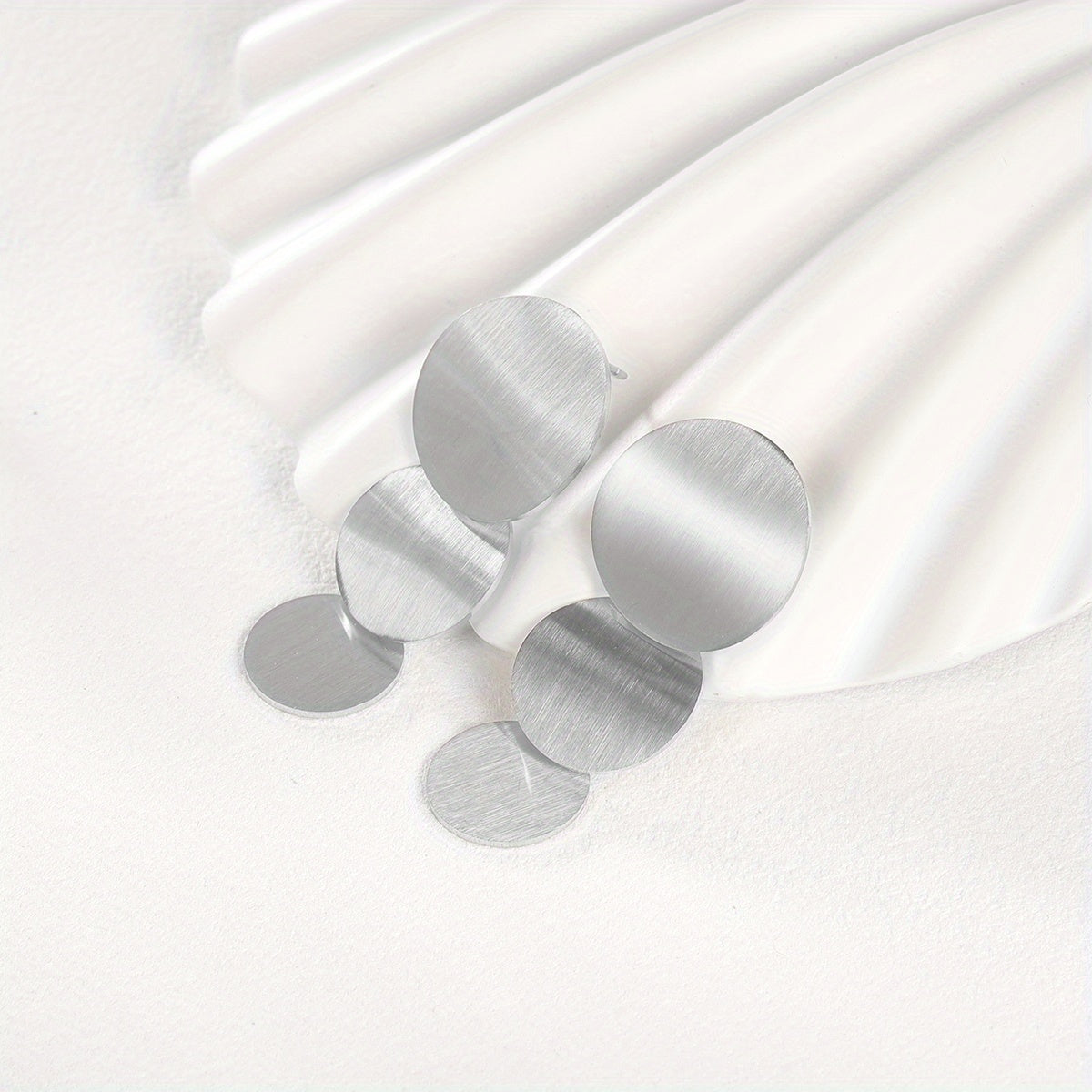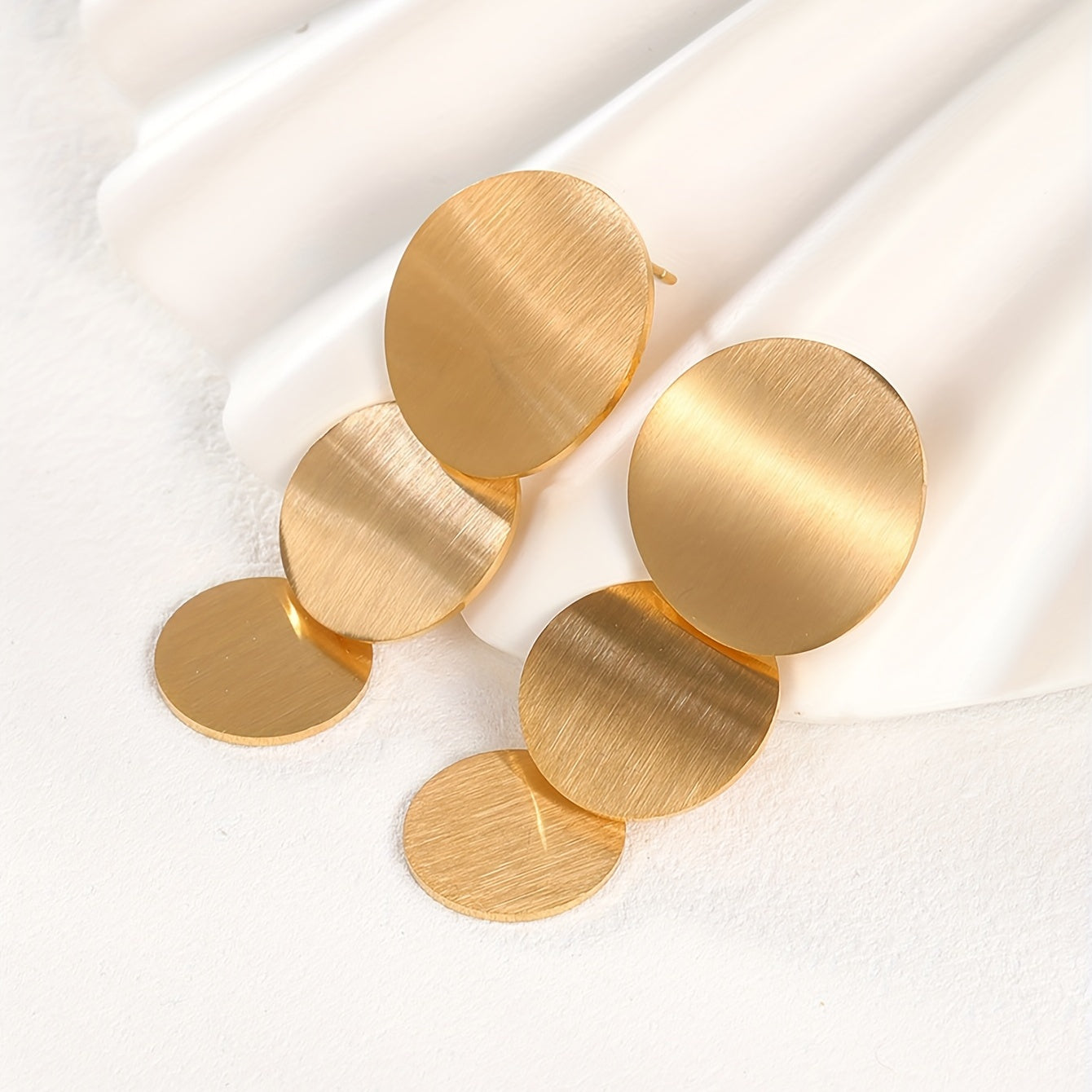 These minimalist style dangle earrings feature a golden silvery round sheet design, perfect for adding a touch of elegance to any outfit. Made of stainless steel with 18K gold plating, these earrings are a great gift for any female in your life.