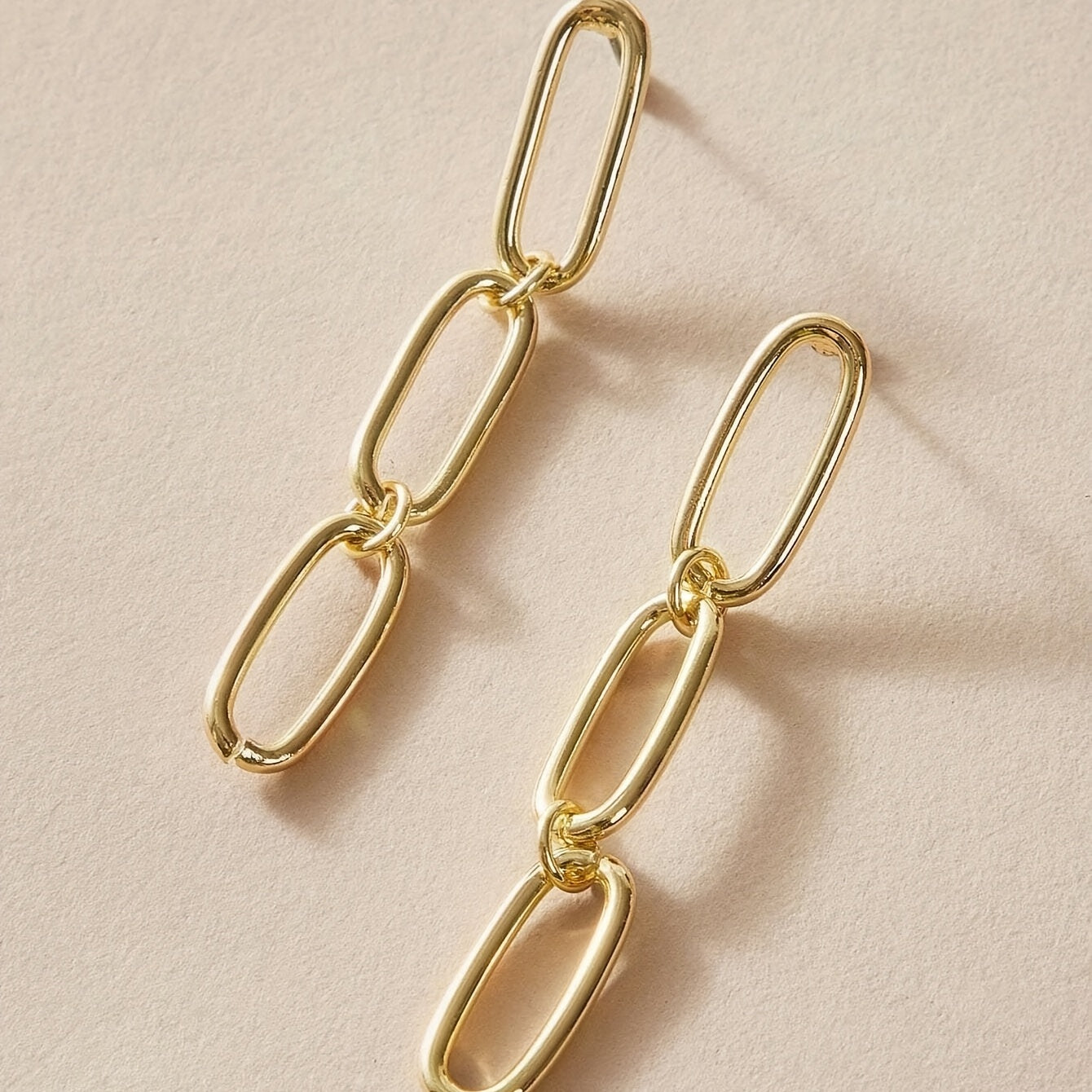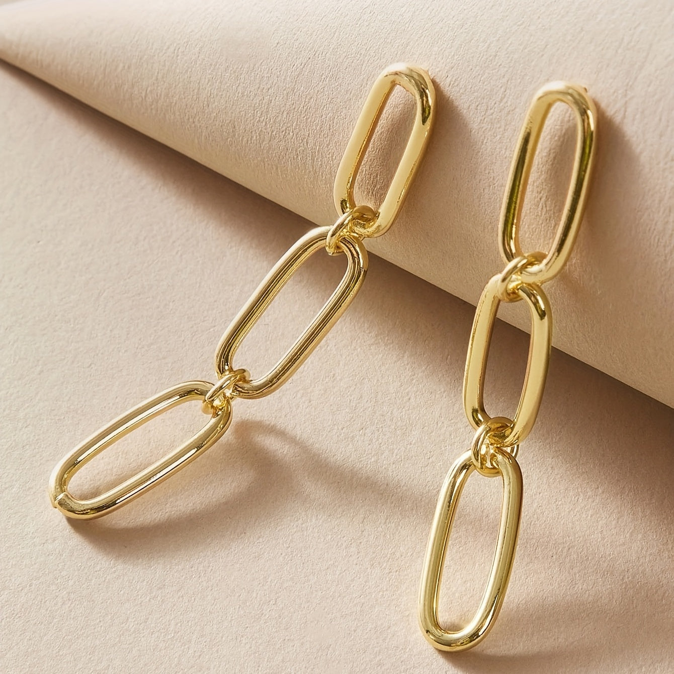 These elegant dangle earrings are a perfect accessory for a night out. Made of high-quality alloy with 18K gold plating, they add a touch of glamour to any outfit. A great gift for someone special.