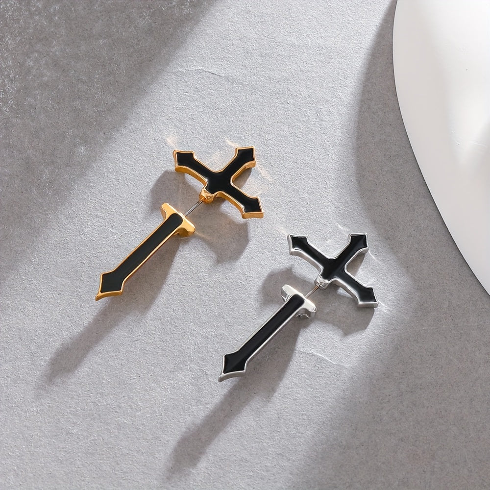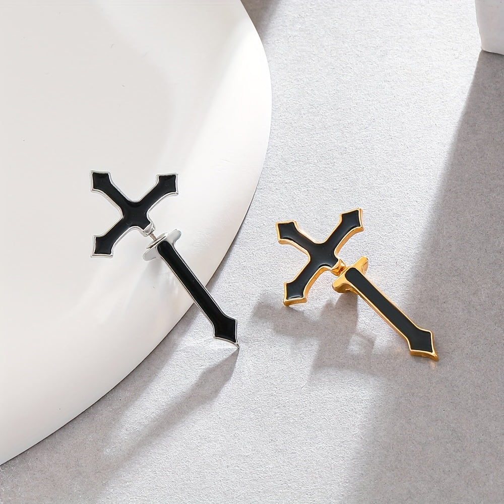 Enhance your style with these retro gothic cross ear jacket earrings crafted from high-quality alloy with 14K plating. Perfect gift for women and girls.