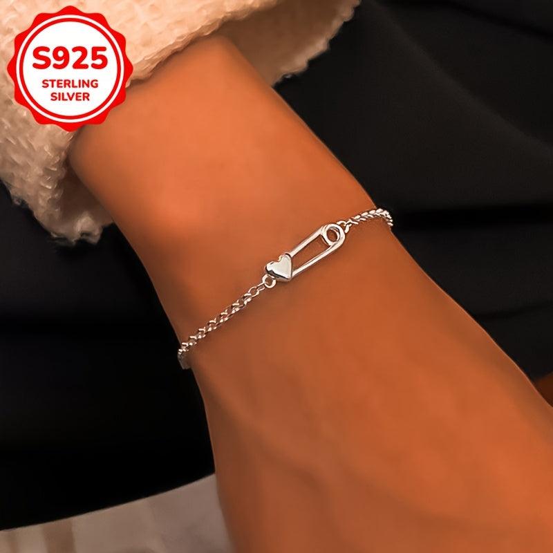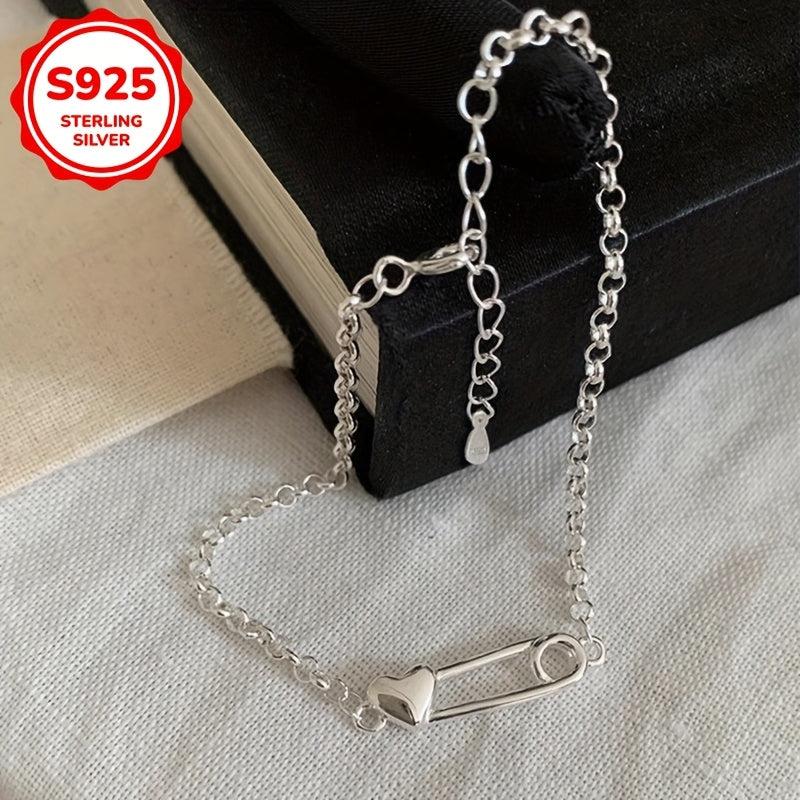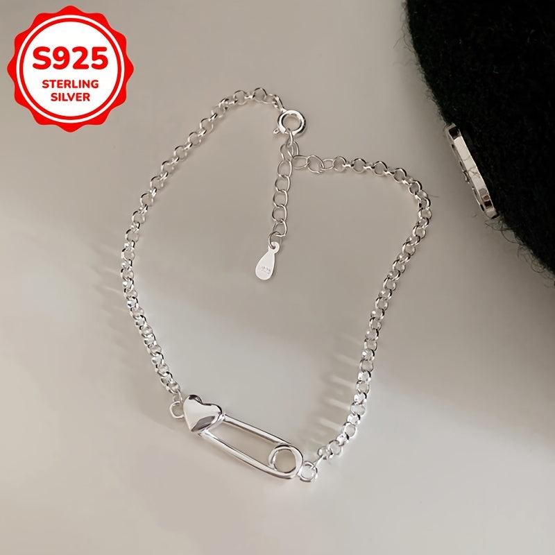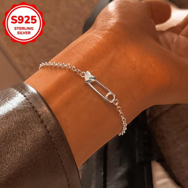 Elevate your style with this fashionable heart shaped paperclip bracelet made of 925 silver, weighing 2g. Perfect for daily wear, dates, parties, or gifting.