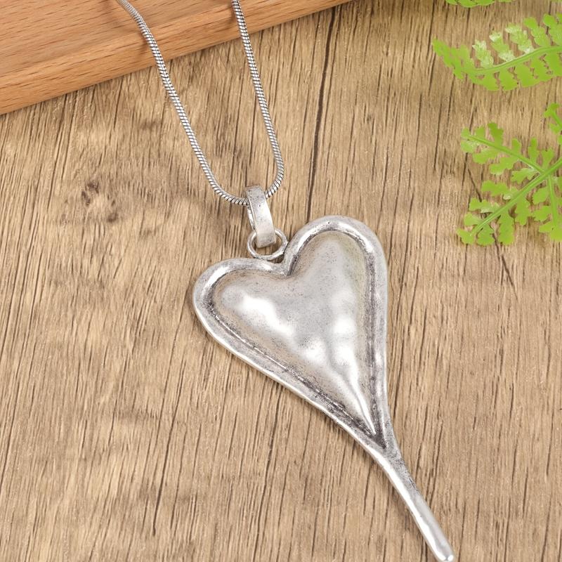This fashionable zinc alloy necklace features a retro heart-shaped charm, perfect for daily wear or parties.