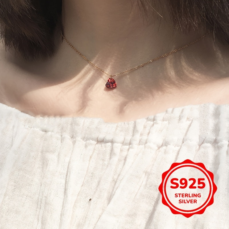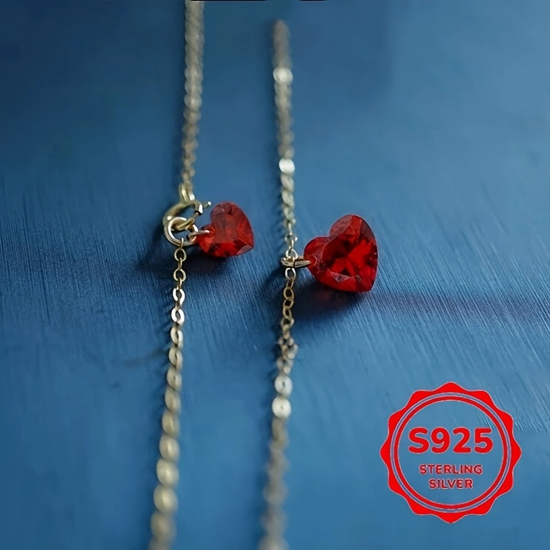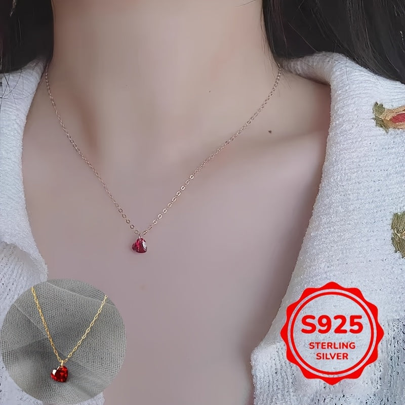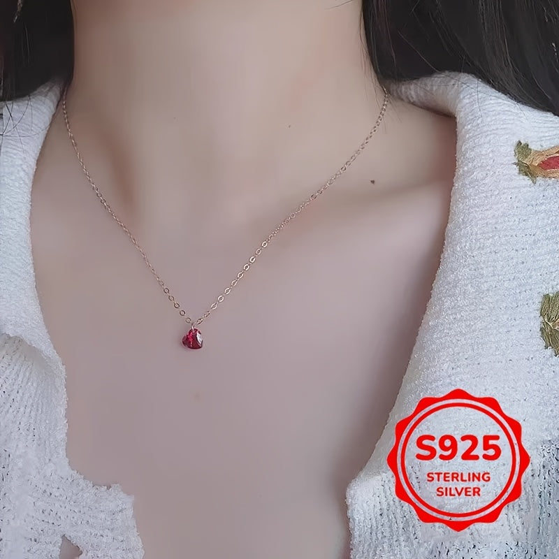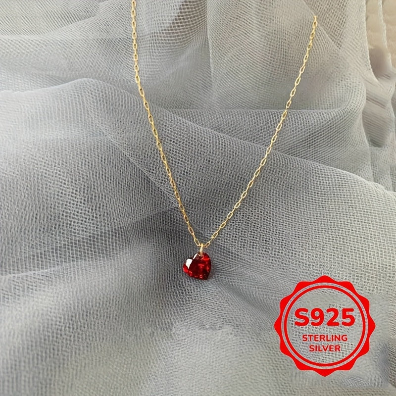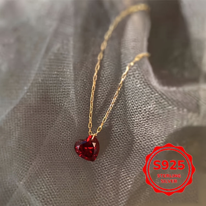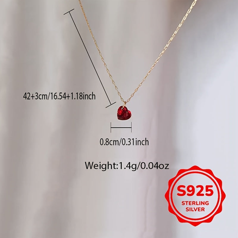 Diese wunderschöne herzförmige Halskette verfügt über einen roten Kubikzirkonia-Anhänger auf einer Schlüsselbeinkette aus Sterling Silber. Perfekt für tägliche Kleidung und macht ein tolles Urlaubsgeschenk.