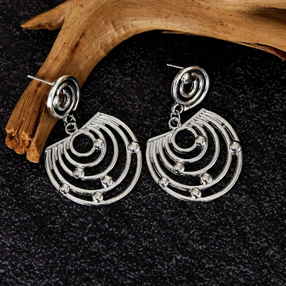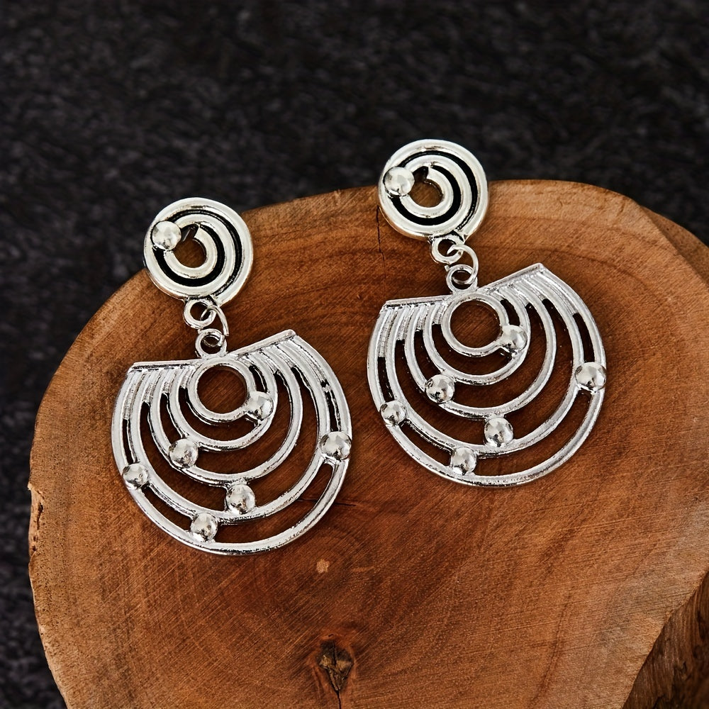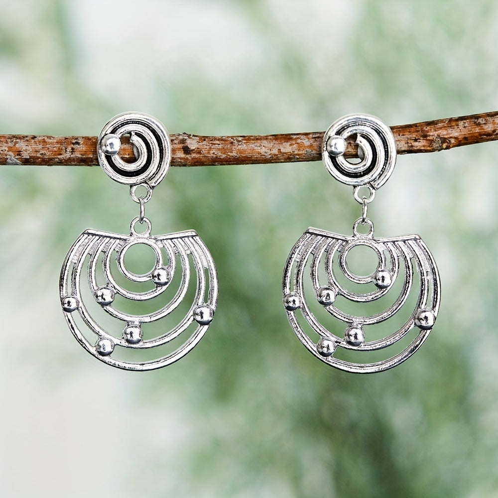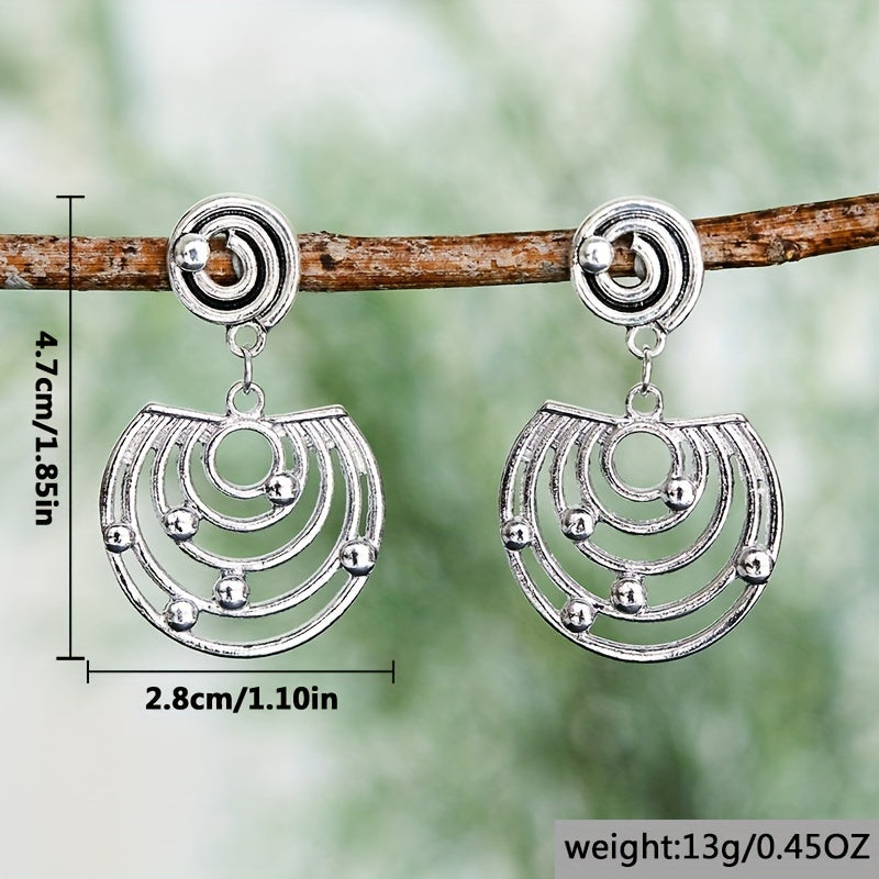 These dangle earrings feature a hollow round shape with a spiral pattern, perfect for a retro bohemian look. They are made of high-quality alloy material and make a great gift for women.