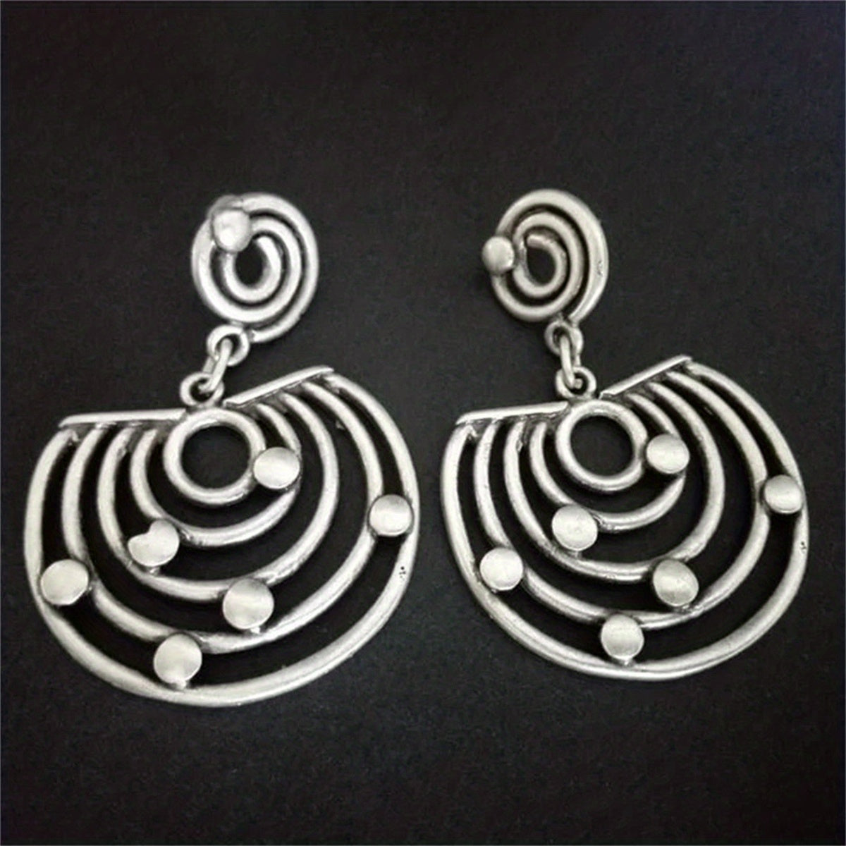 Hollow Spiral Pattern Dangle Earrings Retro Bohemian Style Alloy Jewelry