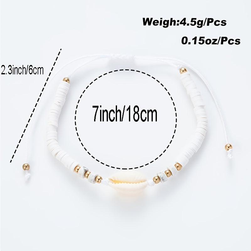 This bracelet features a hot ocean style design with shell gemstones and silicone beads. It is hand-woven and adjustable in length. Available in 6 colors.