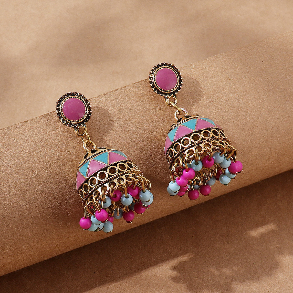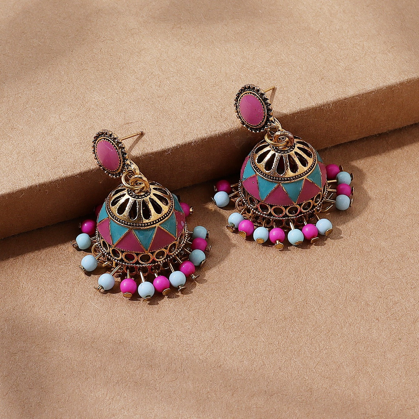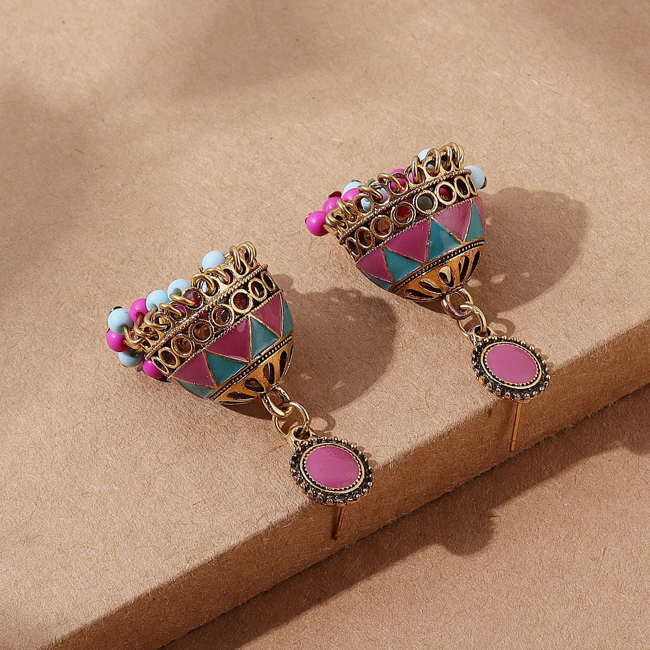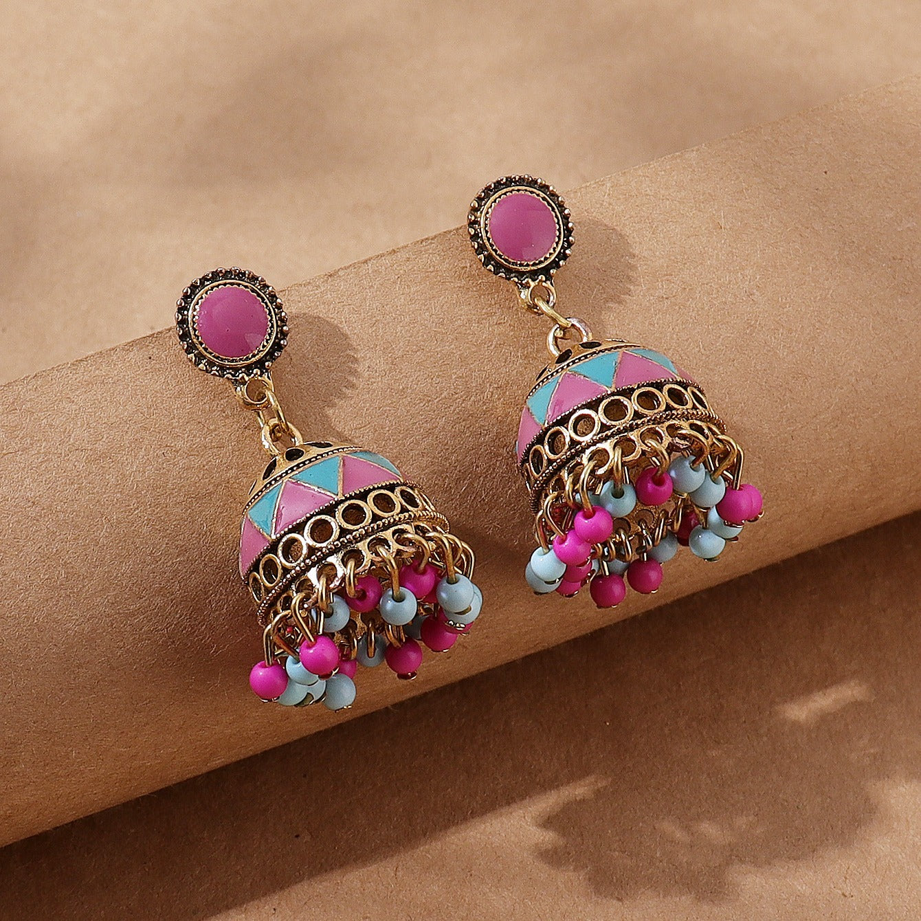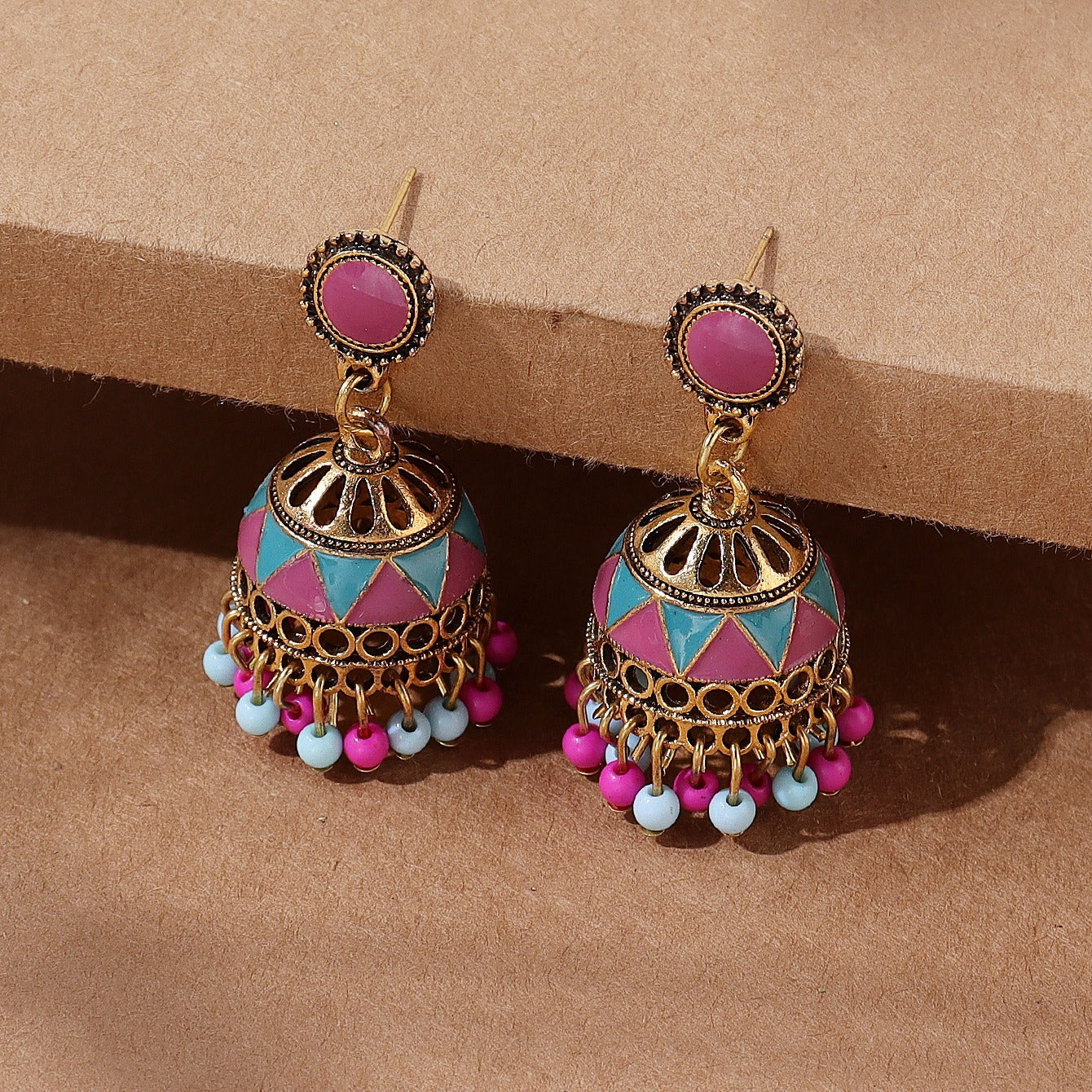 Adorn yourself with these beautiful Indian wind drip oil colored lantern earrings that are sure to add a touch of elegance to your outfit.