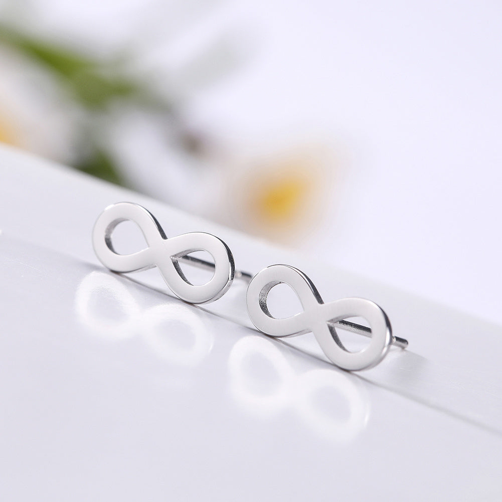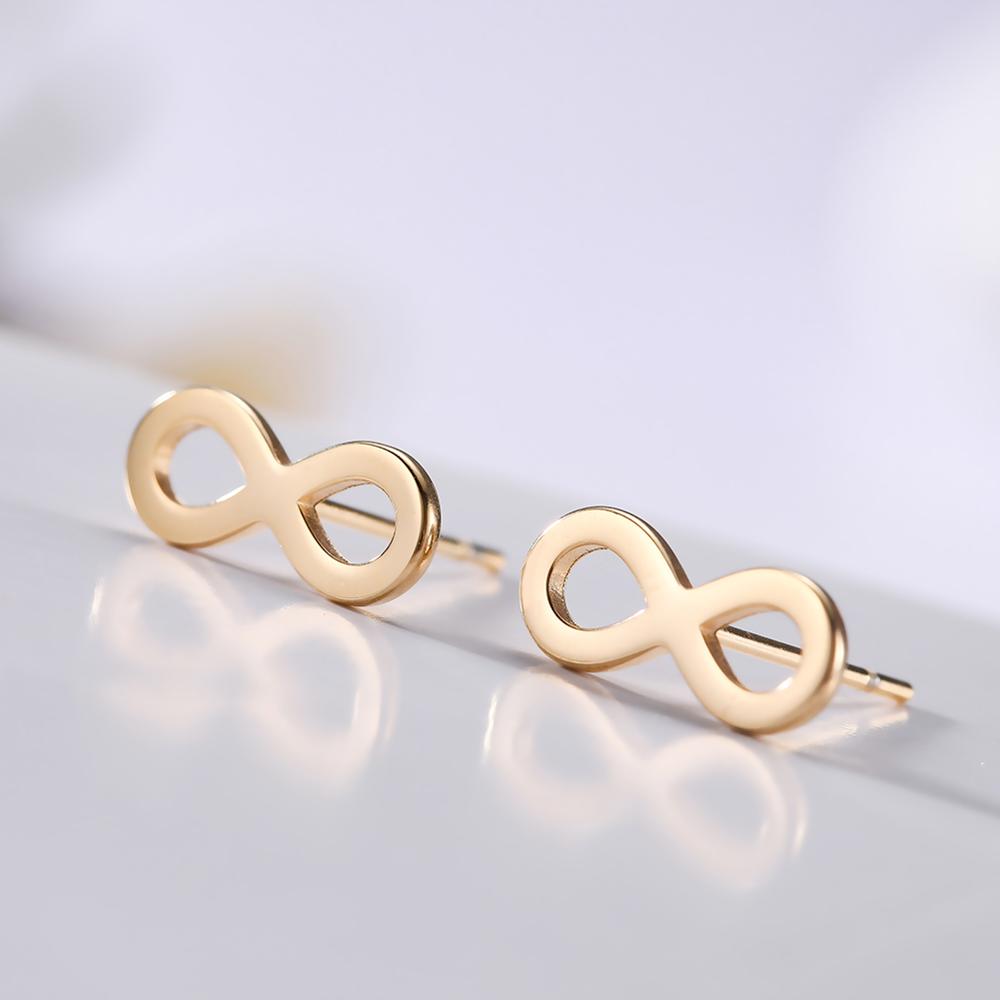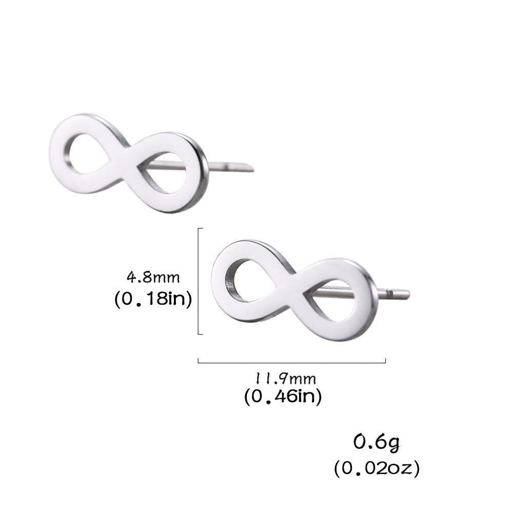 These stainless steel stud earrings feature a small infinity symbol design, perfect for daily wear and adding a touch of elegance to any outfit. They make a great gift for yourself or a loved one.