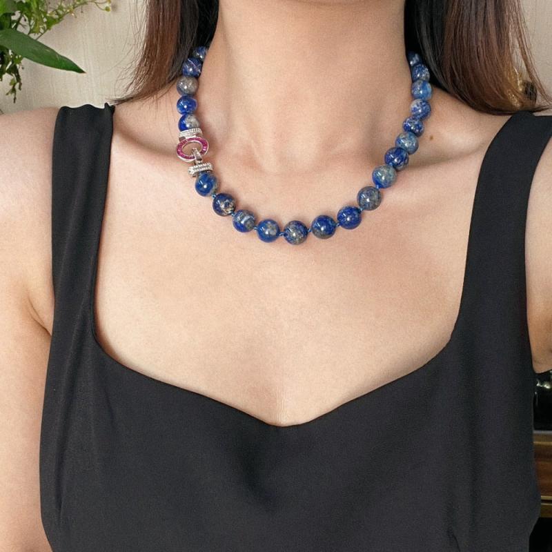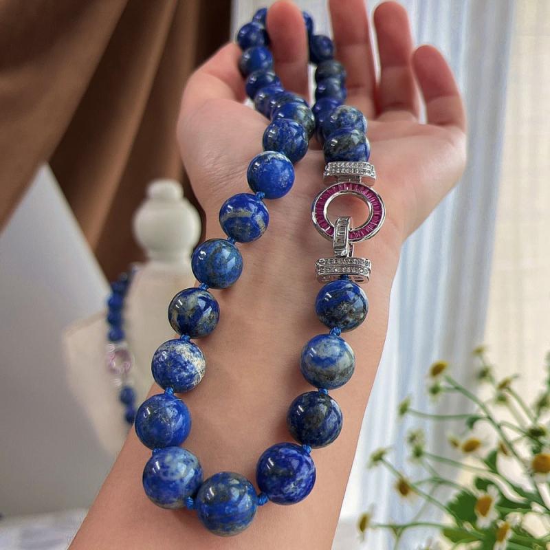 This Lapis Lazuli natural stone necklace features 12mm beads, making it perfect for daily wear and party outfits. It is also an ideal gift choice for loved ones.