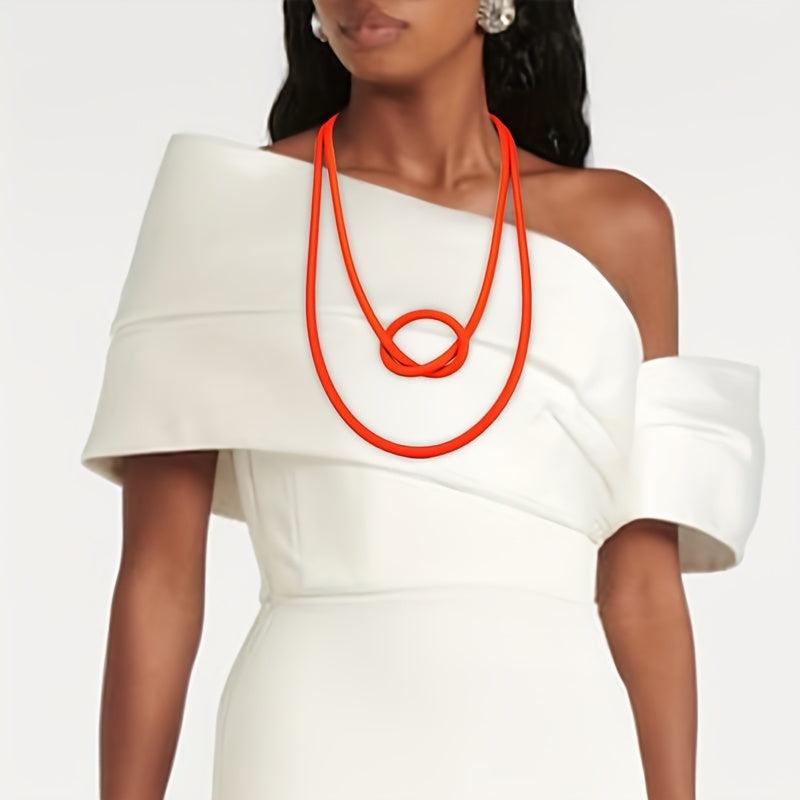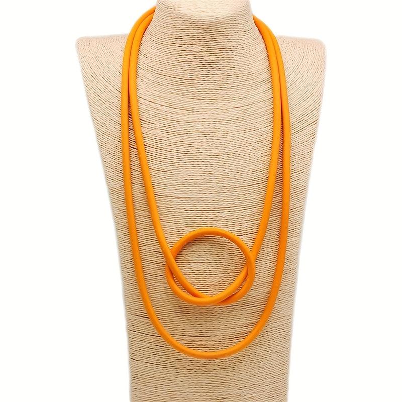 This minimalist wire necklace features a vibrant orange tassel accent that adds a pop of color to your casual attire. Perfect for music festivals or daily wear.