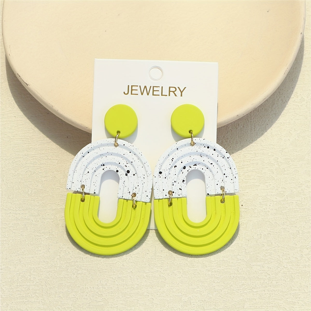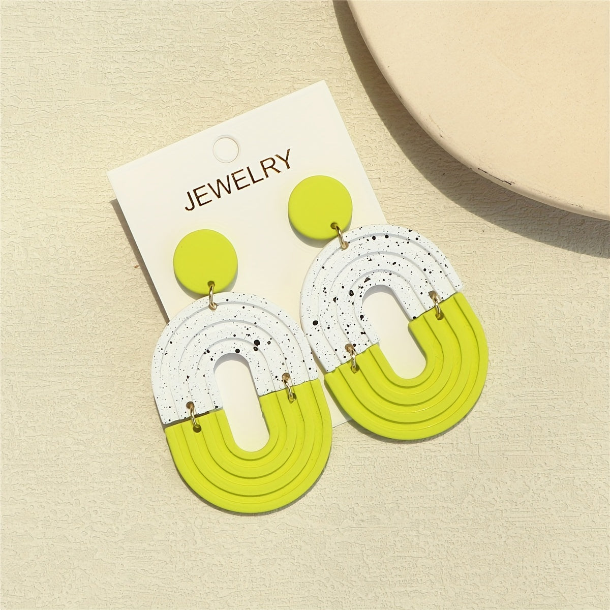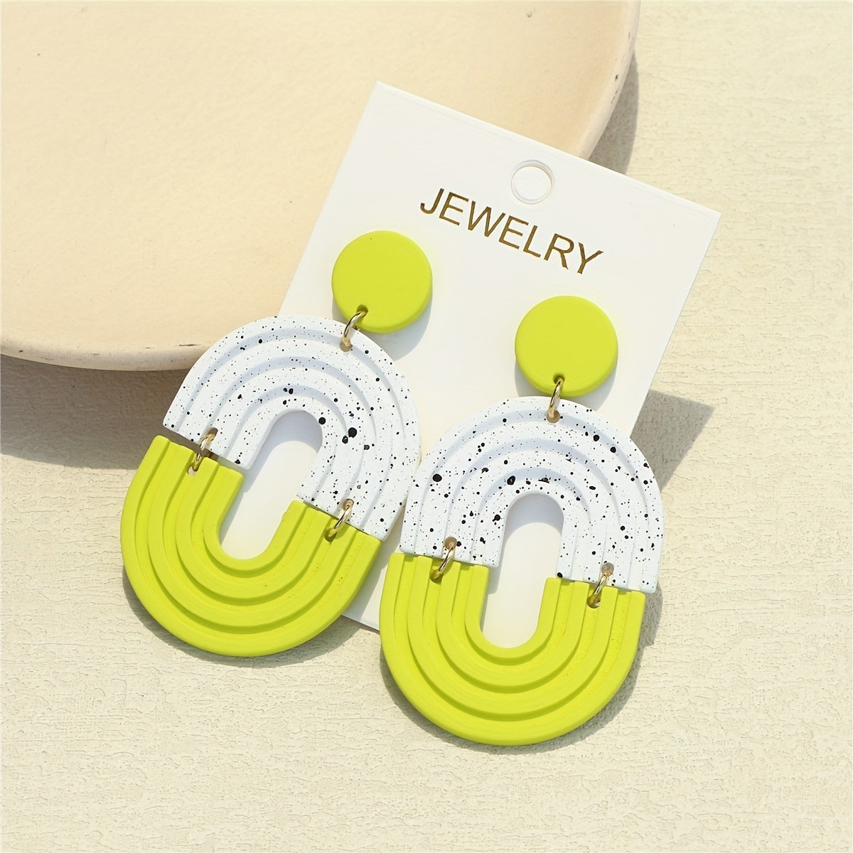 Add a touch of fun and flair to your everyday look with these light green dangle earrings featuring a polymer clay texture. These earrings are perfect for daily casual wear and will add a playful vibe to any outfit.