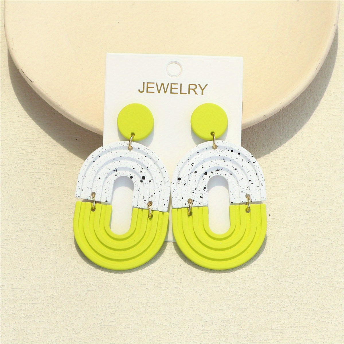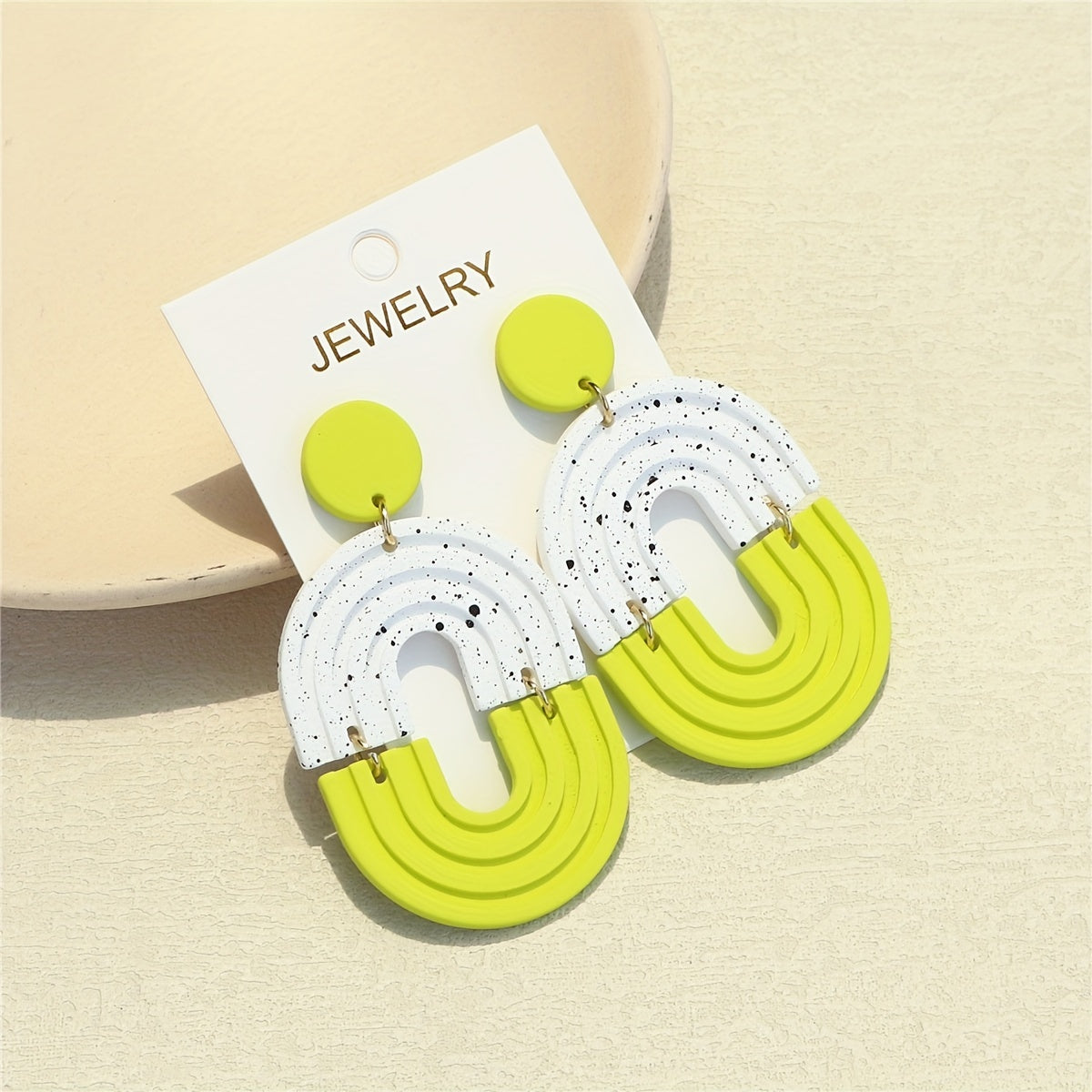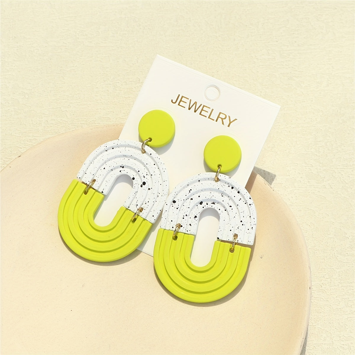 Add a touch of fun and flair to your everyday look with these light green dangle earrings featuring a polymer clay texture. These earrings are perfect for daily casual wear and will add a playful vibe to any outfit.