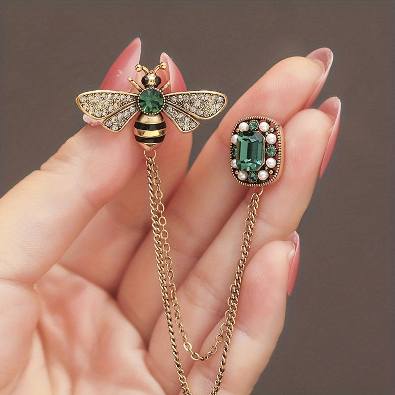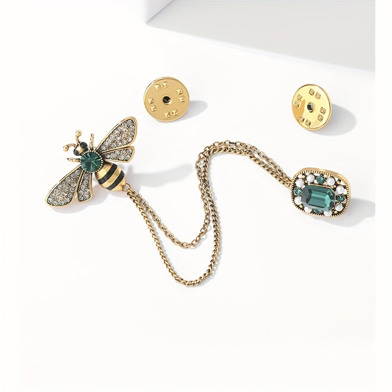 Vintage Style Brooch with Little Bee Tassel and Chain Design.