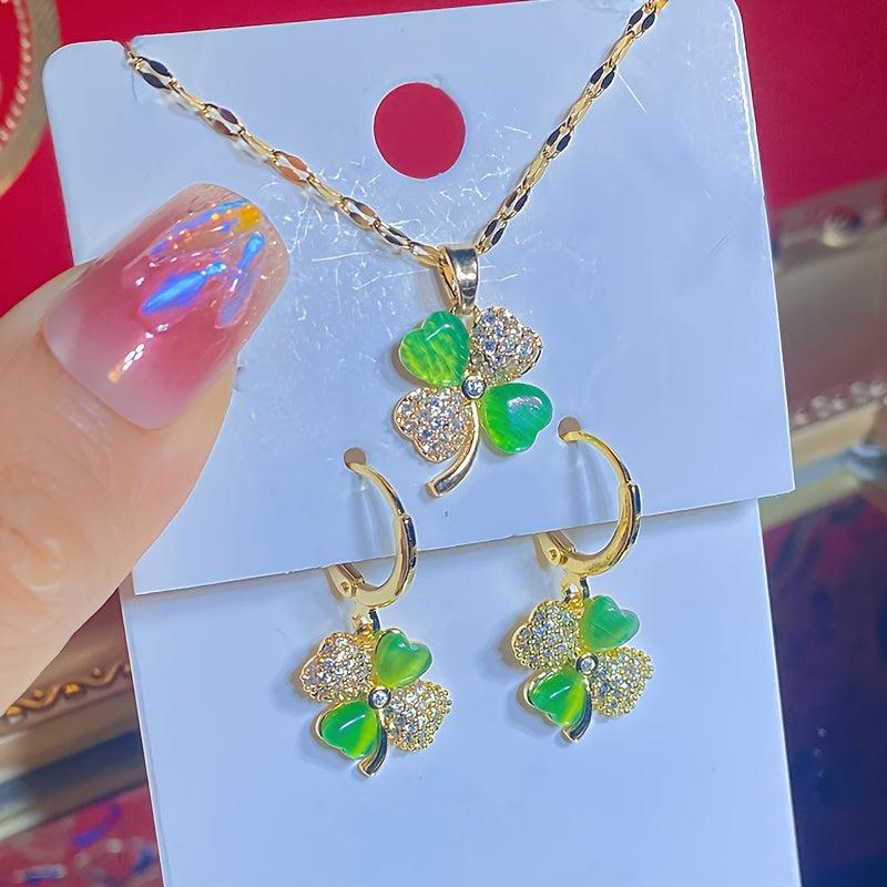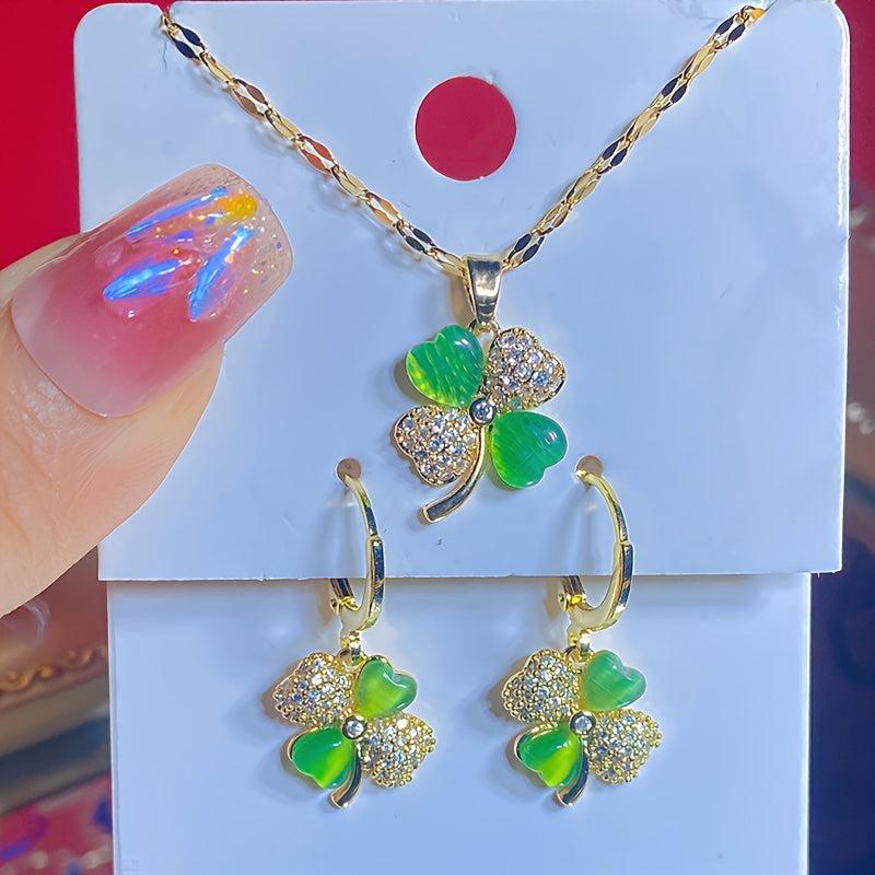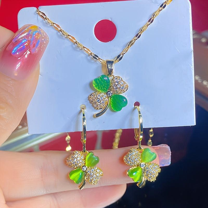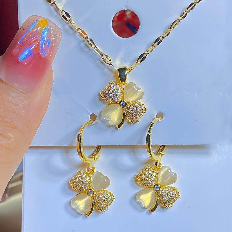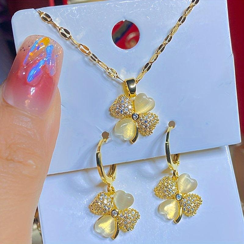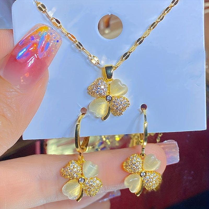 Complete your look with this elegant 3-piece jewelry set featuring a necklace and matching love encrusted earrings. Perfect for any occasion.