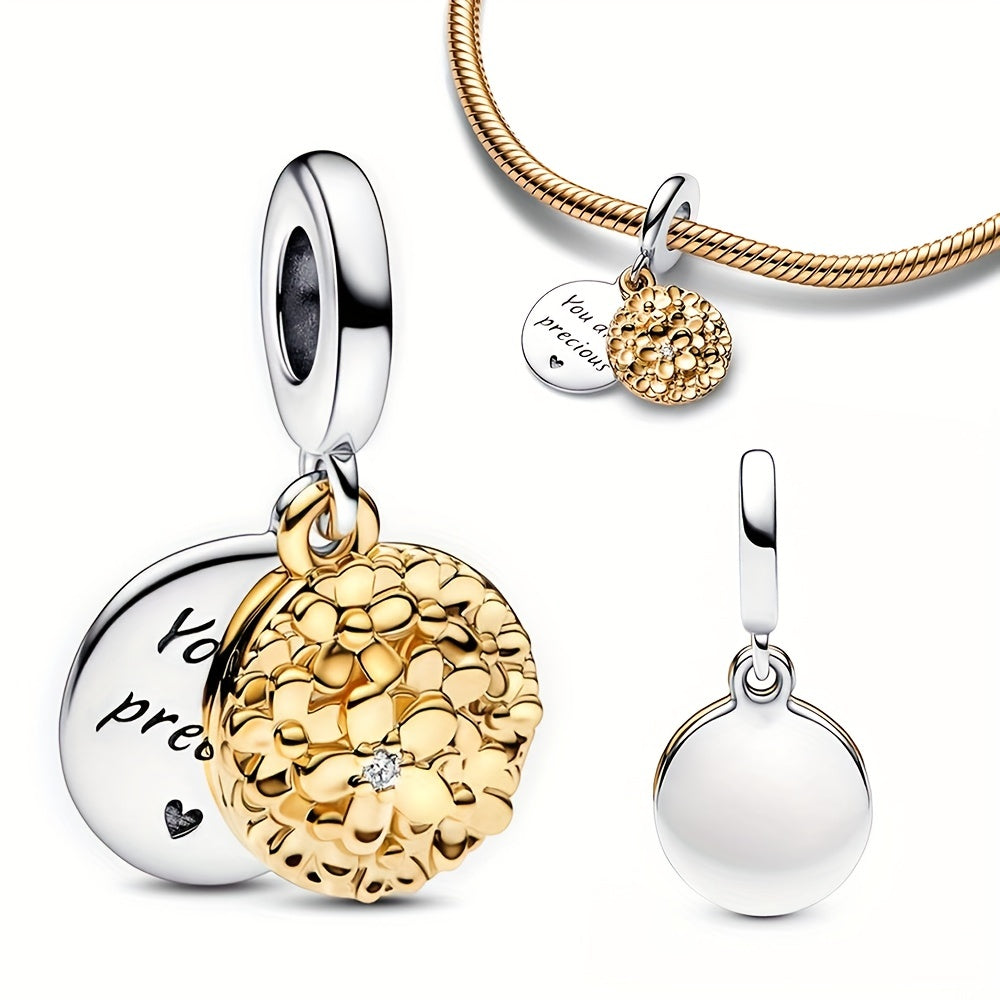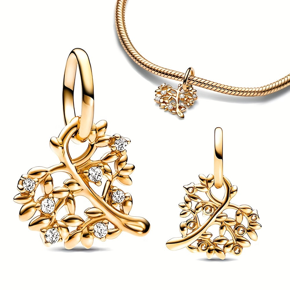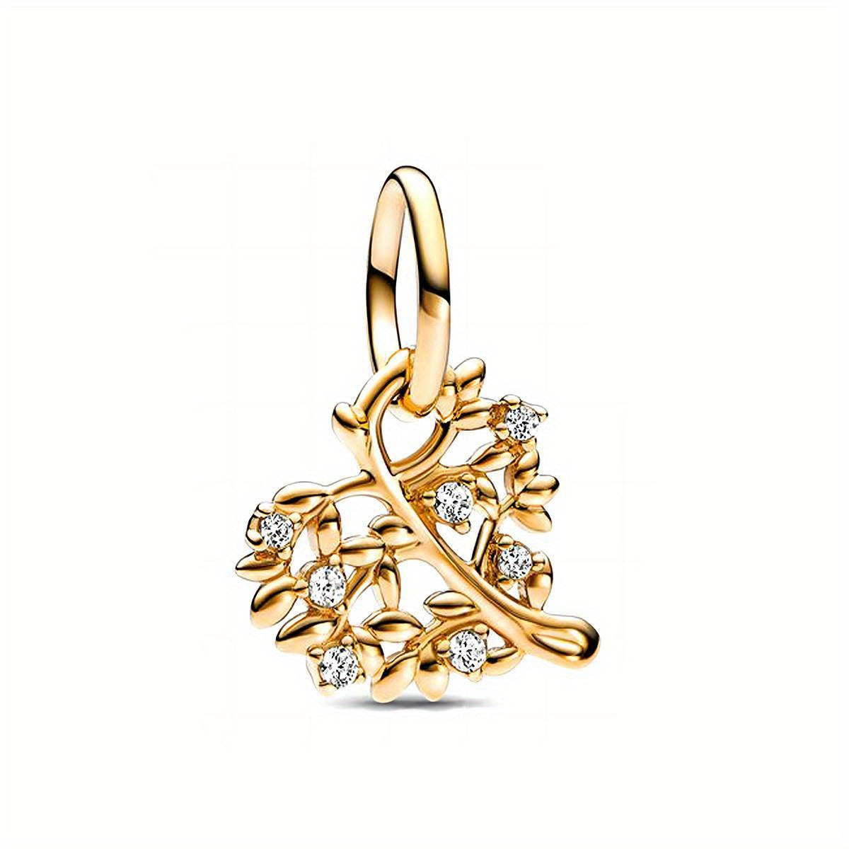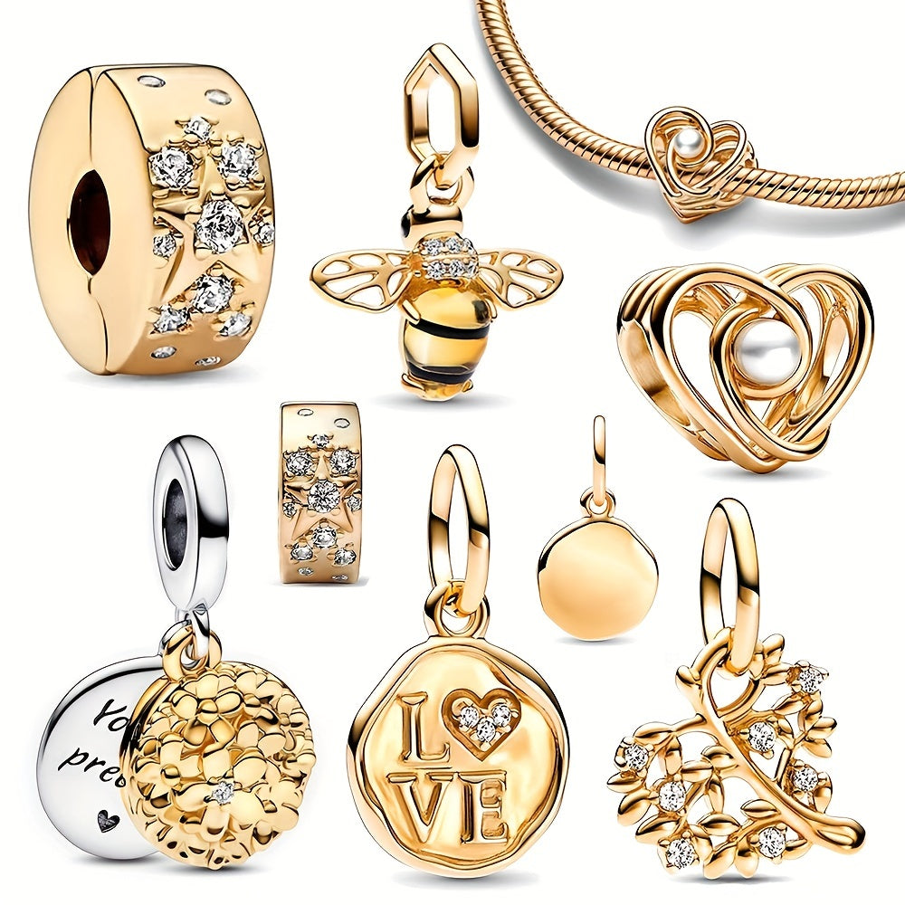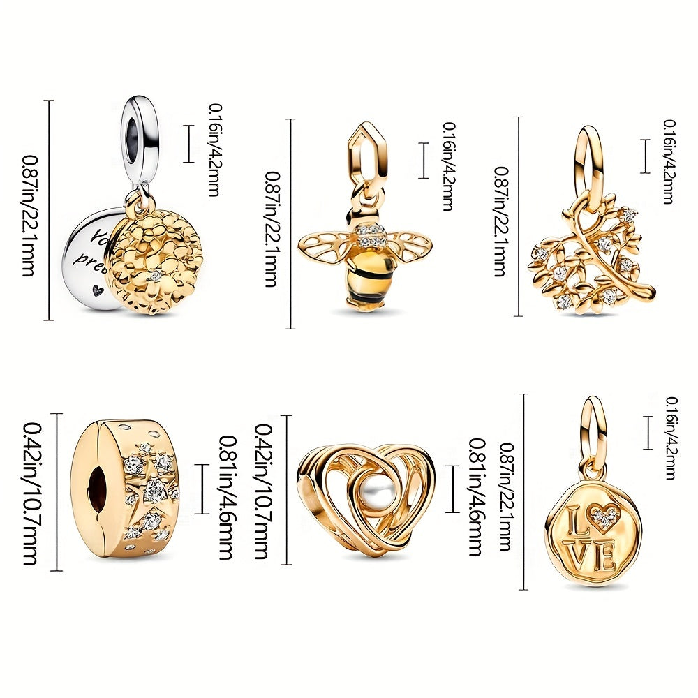 This charm pendant features various shapes like a heart, tree, bee, etc., inlaid with faux crystal and a golden bead, perfect for DIY jewelry making.