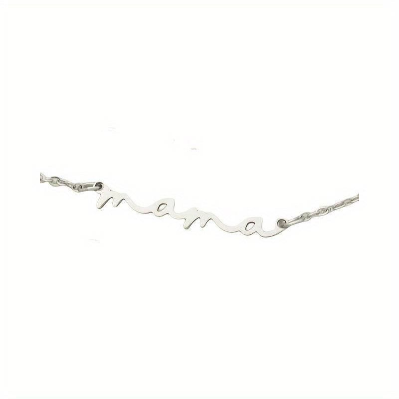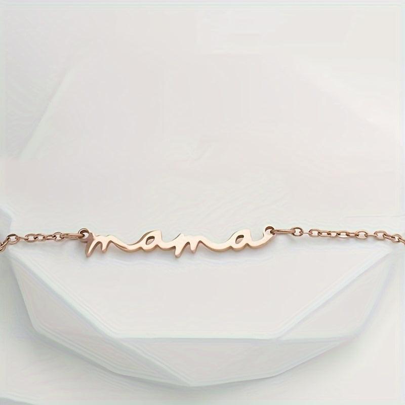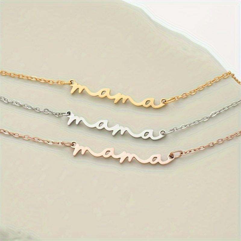 This Mini Mama necklace features a golden tone cursive script design on a collarbone chain. It is a minimalist everyday jewelry piece that is perfect for year-round wear or as a thoughtful Mother's birthday gift.